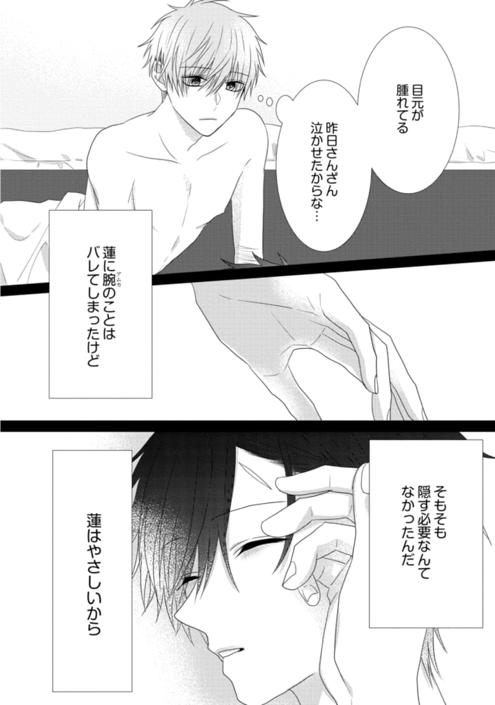服を脱ぎ自身の腕にある無数の傷を見せる颯真(颯真)。