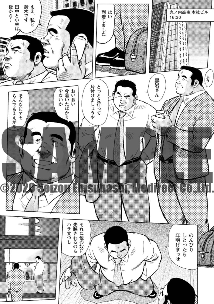 すると、守衛の中島(第三話出演)が、オモチャを使ってケツの穴で自慰をしている場面に出くわす。昼間、小林の姿を見て気になっていた中島は、またたくまに誘惑されて、その身を委ねて抱かれてしまう。