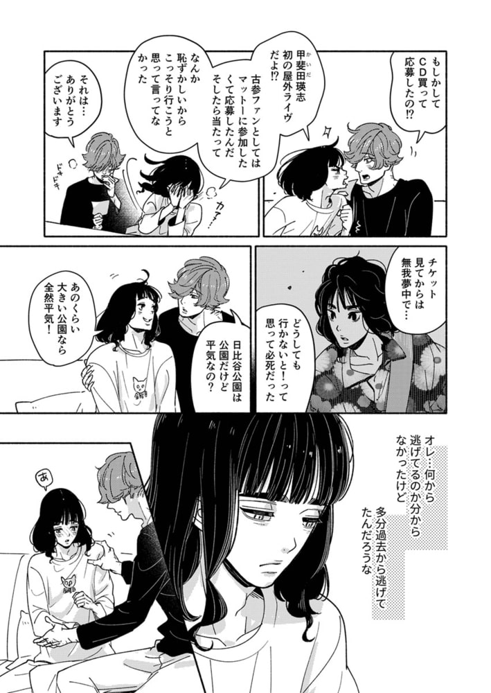 パートナーシップ制度で結婚した菅谷真央と甲斐田瑛志は、二人でアメリカへ移住。真央は映画撮影のため、瑛志はリハビリのためだった。甘い日々が過ぎていく中、瑛志の指先はまだギターを弾くには完全ではなかったが、遊びに来ていた新島たちと、とあるクラブで演奏したところ、そのライブ動画がSNSで拡散、瑛志の名前がトレンド入りし、新島たちのバンドも広く知れ渡ることになる。みんな明るい道が開けようとしていたなか、自信を取り戻した瑛志と映画を撮り終えた真央は、満を持して日本へ帰国する!「あの時からスキだったんだと思う」真央と瑛志のその後を描いた続編!!