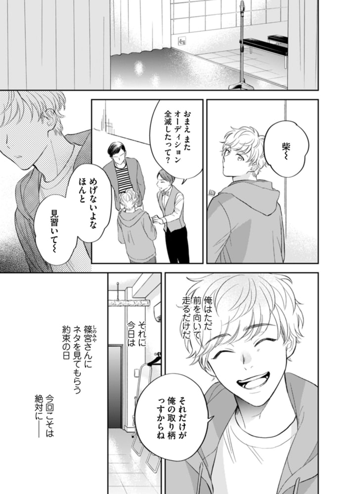 篠宮に自分のネタを見てもらえるようになった柴。事務所のオーディションにはことごとく落ち、芸人仲間からもバカにされていたが、自分の欠点をしっかり指摘してくれる篠宮の気持ちに応えようと、ダメ出しにもくじけずに前を向いて頑張る。そんな時、ガヤとして初めてテレビ出演できる機会が訪れ、柴は千載一遇のチャンスと大喜び。ただ、その報告を聞いた篠宮には一抹の不安がよぎっていた…。