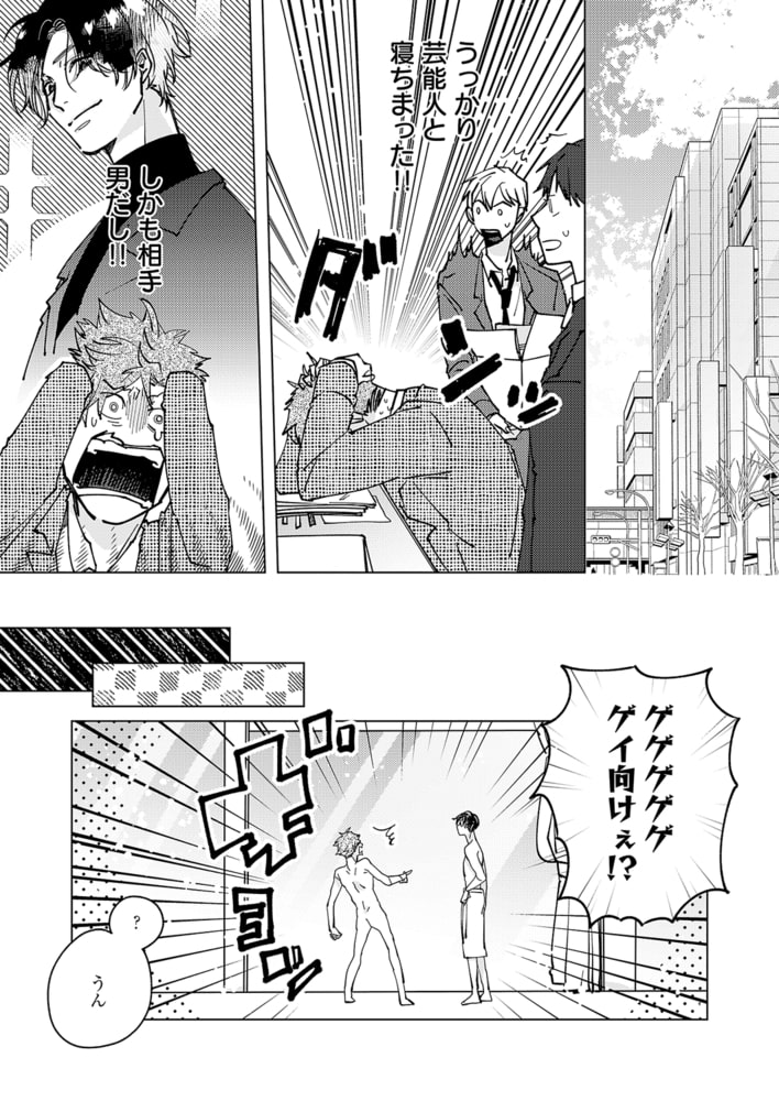 今をときめく芸能人・二階堂由貴と一夜を共にし、セックスをしてしまった!と焦る九条。しかし、体は正直でその時のことを思い返すと、熱が戻ってくる感覚に陥ってしまう。