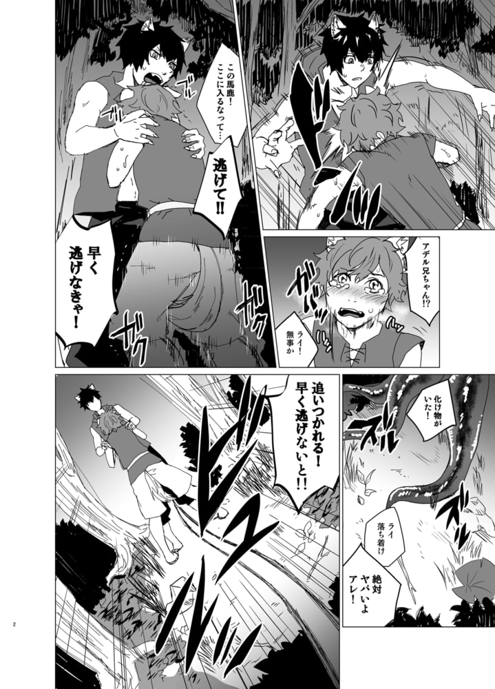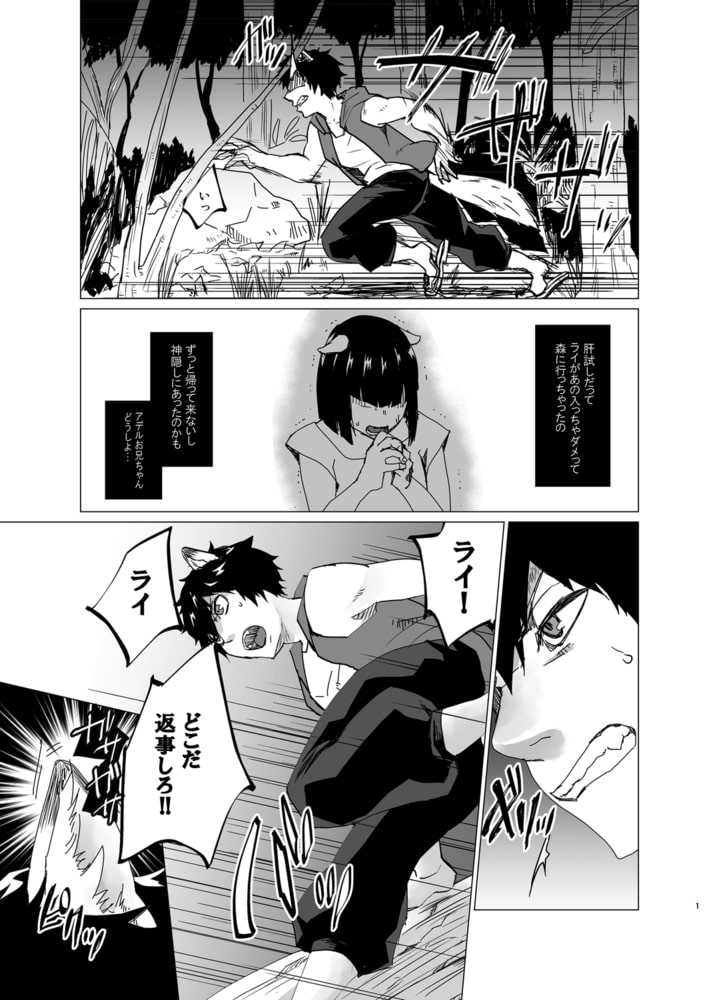 森から帰ってこないライを探しに行く獣人の青年アデル。