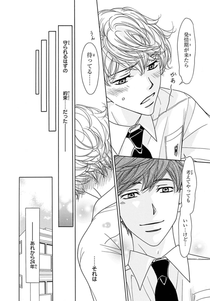 『ビギナーなΩ 38歳、初めての発情』1~2話を収録した合冊版!中学の時に「発情期が来たら僕の番になって?」と幼馴染で親友のしろ(α)にプロポーズされた千早(Ω)。しかし…それから24年、発情期は来ないまま38歳に。しろとは相変わらず友達だが、『あの約束は時効だろう』と思っていた。それなのに…ある日突然しろの前で発情期が来てしまい!?人生初の発情期に快感を求め乱れる千早。その姿を見て、しろは「いい匂いだ」と千早のを扱き出し!?部屋中に広がるフェロモンと響くいやらしい音。更には、千早のナカがしろの熱いモノを欲して疼き出し…。約30年の片思いが動き出す――。