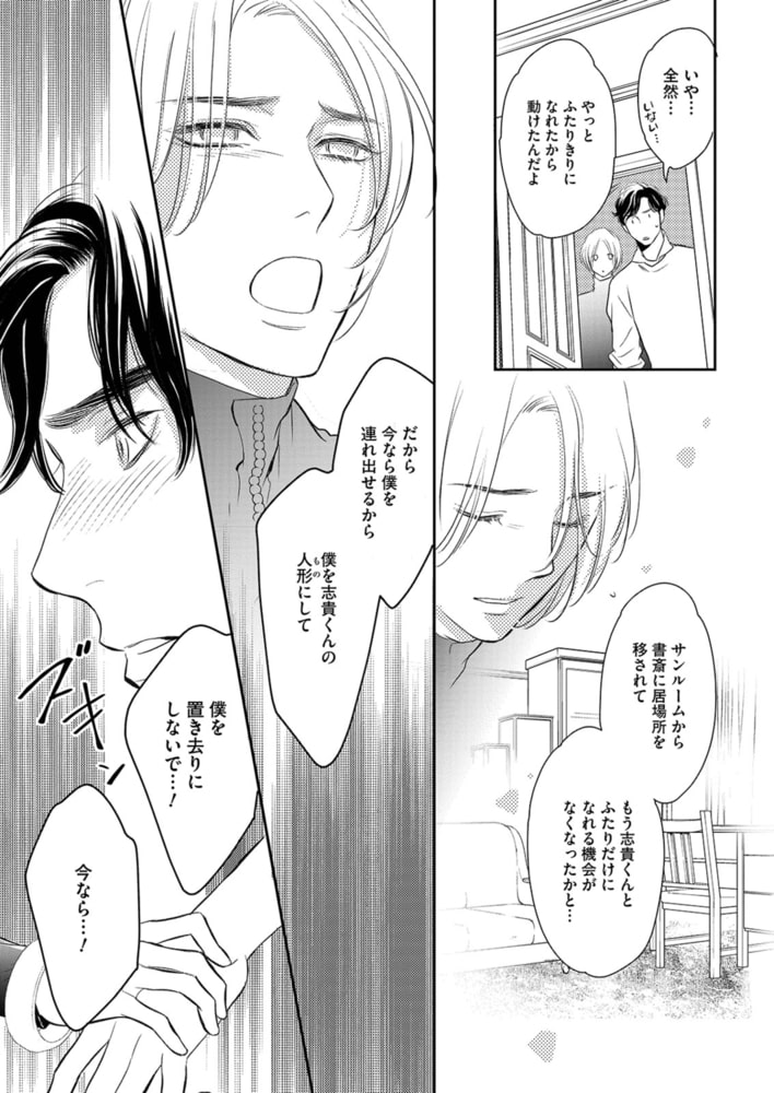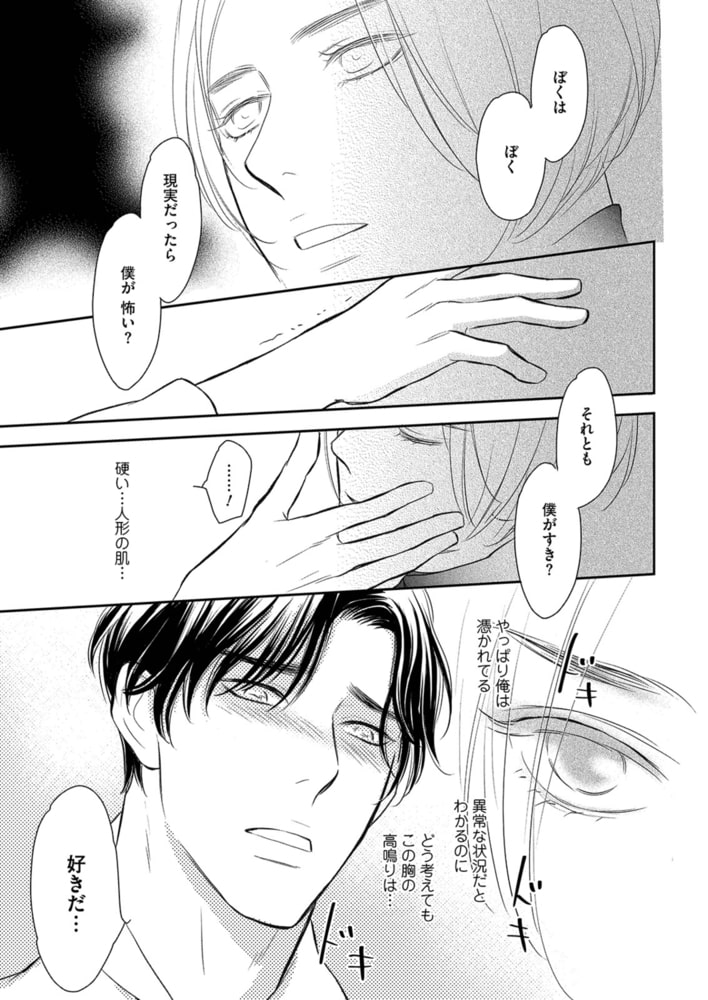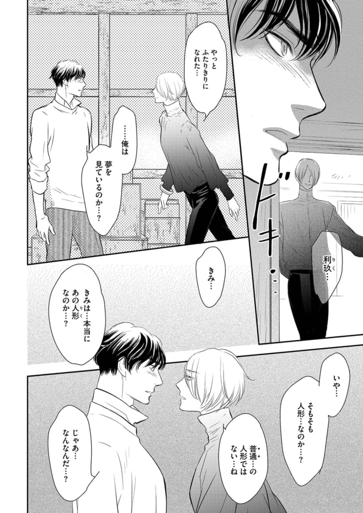 仕事先の屋敷で出会った不思議な人形、利玖。志貴とふたりきりになると動き出し話す、まるで夢を見ているかのような感覚。そんな利玖に徐々に惹かれた志貴は、自分だけのものにしたい気持ちがわいてしまう。ある日「ここから連れ出して」と利玖から懇願され、屋敷から連れ出す方法を考えるが…。