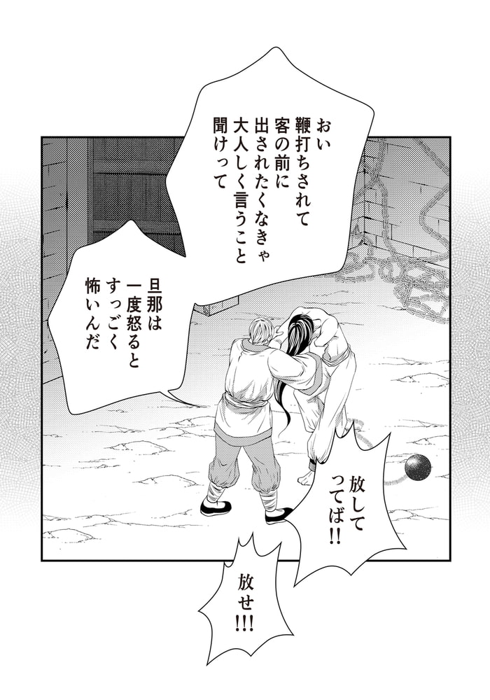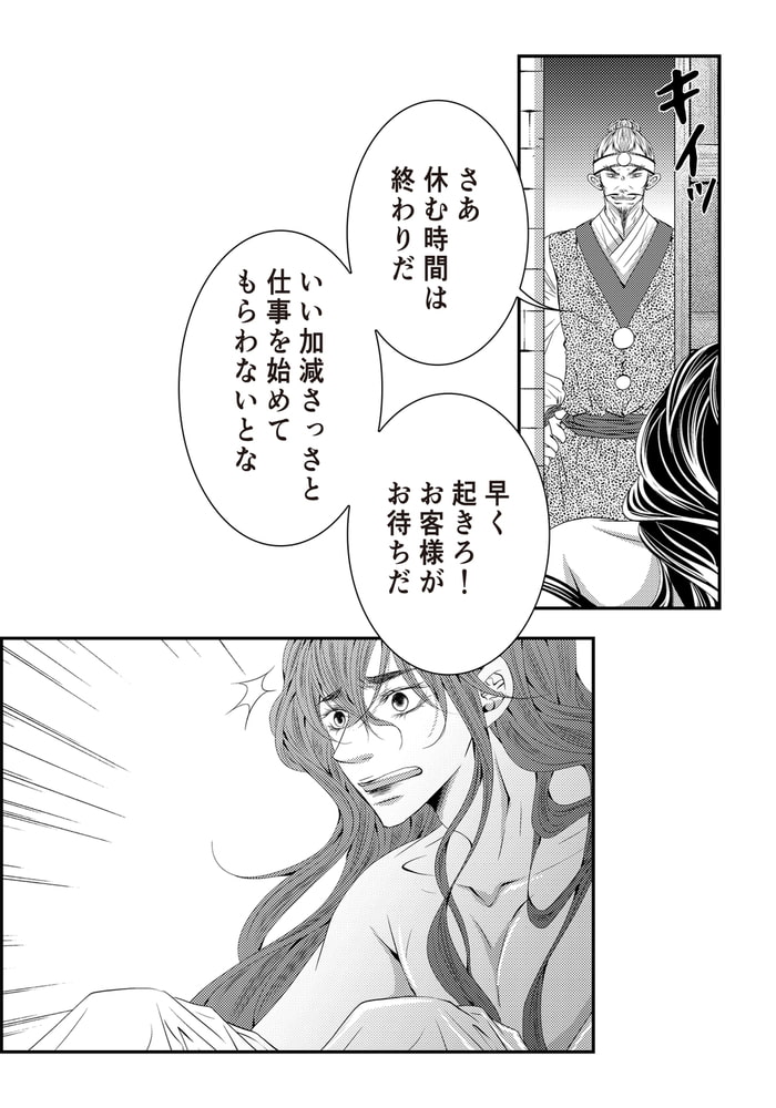 家族を皆殺しにした張本人がイゲンであるということをまだ知らないカサンは、彼の湯浴みの世話をする奴○となり、冷血漢とばかり思っていたイゲンに得体の知れない魅力を感じ、徐々に惚れ込んでいく。