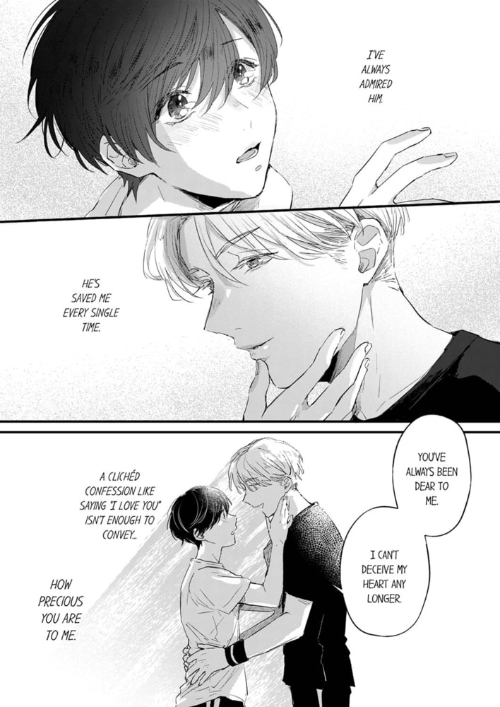 Rookie actor Naoto joins a theatrical company following the actor he admires, Non. Moreover, he was chosen to play the role of this lover in their new boys love performance! The characters are "lovers," so there are kiss scenes in the play. He's too nervous to act a kissing scene with the troupe's poster actor well...!!! Nonomiya wants to help him, and proposes that they treat each other like lovers until the performance. Since then, he's been overly sweet and kind... but when they practice kissing, he comes on to Naoto with such wild seductiveness that he feels as if he's going to be "devoured". Seeing Non's manly expression for the first time lights Naoto's body on fire... The way he bites his tongue and sucks on it during kissing, his burning gaze... the curtains to a time-limited love open.