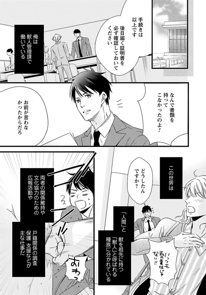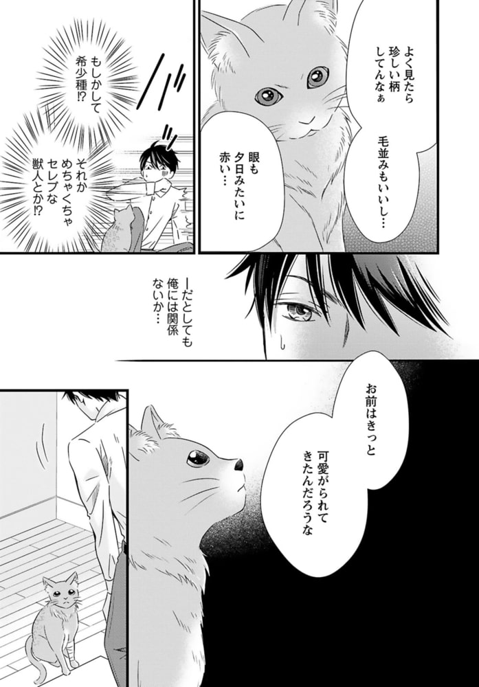 【電子書店、描き下ろしイラスト1P収録】【あんたが味わう初めての獣人だろ?】獣人管理課で働くイチは、実は獣人が苦手。プライベートでは獣人に関わりたくないと思っていたある日、猫姿の獣人にケガを負わせてしまう!痛みで人の姿に戻れない猫を仕方なく家に連れ帰り眠りにつくと………なぜか腰がムズムズして目が覚めて――?「世話してくれた礼に気持ちよくしてやるから」とイチを襲っていたのは、真っ赤な瞳に褐色肌の男。さっきまで猫だった男の正体は、恋の噂が多い異国の王子様だった――!!?遊び慣れた元ヤリチン王子×不器用なコンプレックス持ちの、カラダから始まる身分差BL‼※同タイトルの1話~4話を収録した単行本版です。重複購入にご注意ください。