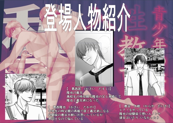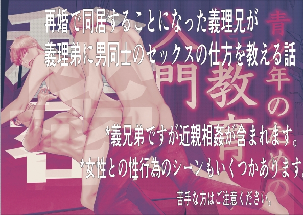 両親の再婚で同居することになった匡(たすく)は義理弟の隆也(たかや)の恋愛相談にのっているうちに男同士のセックスの仕方を教えることになる。