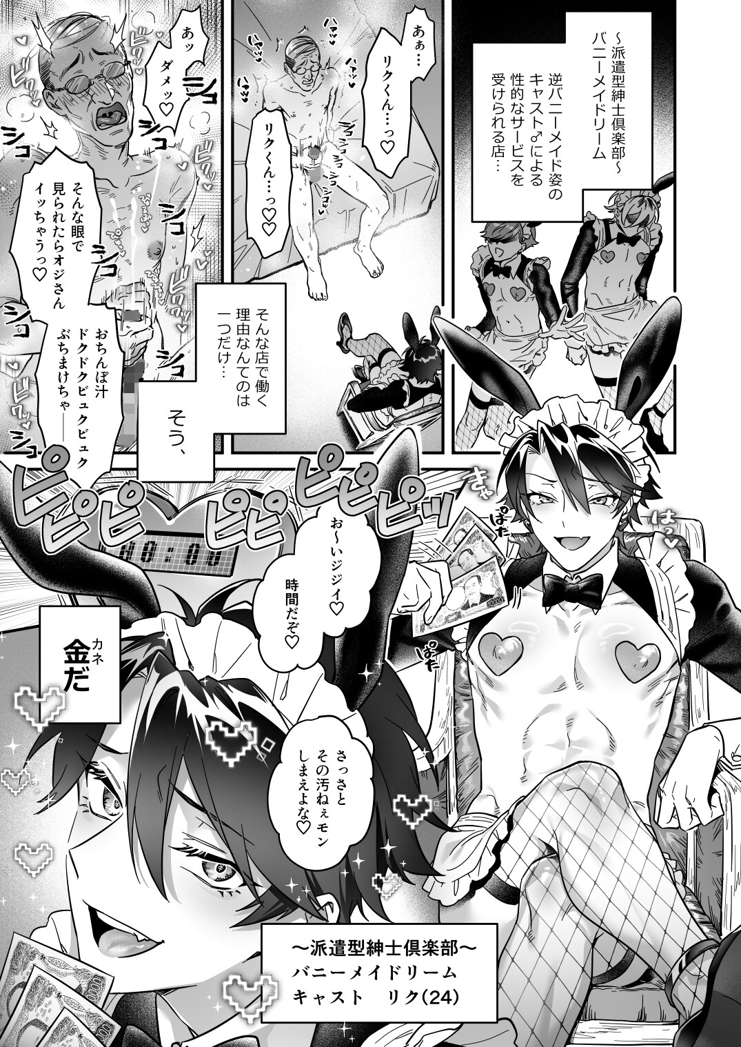 ~派遣型紳士倶楽部~バニーメイドリームで働くリクくんはブランドものがだぁいすき♡ 今日もせっせとメゾンの新作のために変態親父達に塩対応でお金を稼ぎます。 そんなリクくんの元にあるご主人様からご指名が♡ 金払いのよさそうなご主人様の元にウキウキ気分で向かったリクくんだったが、なにやらご主人様はリクくんに特別な思いがあるようで…? 含まれるプレイ内容↓ ・媚薬 ・拘束 ・乳首責め ・結腸責め ・オホ声 ・潮吹き