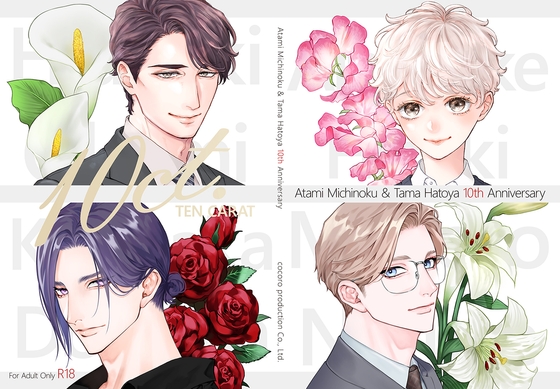 みちのくアタミと鳩屋タマの画業10周年記念合同誌です。商業誌番外編で「カリギュラの恋」「はなゆかば」「えっちなお尻じゃダメですか?」「斉賀さんは恋くんを愛でたい」などなど他にもこれまでの商業作品の番外編漫画が収録されています。 小説は元きふみ(両名のマネジャ/K)が書いてます。
