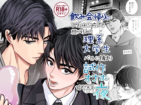 飲み会帰りにふらっと立ち寄ったアダルトショップ。 そこにいたのは顔が好みすぎる理系大学生バイト。 「熱心に見てますね。ちょうどテスターを探してまして。興味ありません?」 気づけばそのままラブホへ―― 理系大学生×社会人BL 試作オナホのテスターにされる夜 本文30P