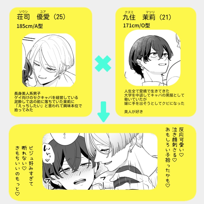 長身綺麗系なセクキャバオーナー×ダメ可愛いムチムチ男子