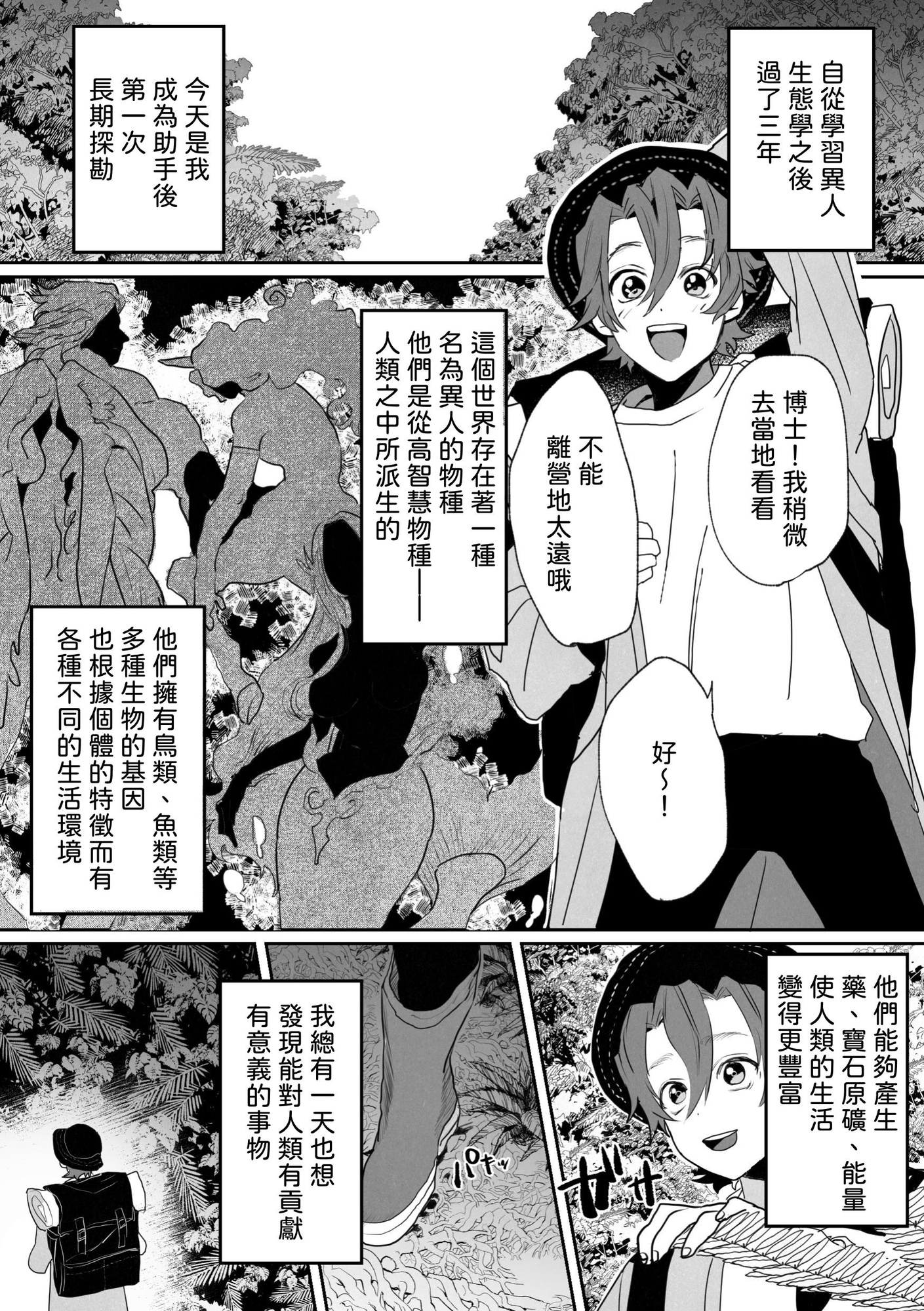 新米研究員(主人公)は異人の生態を調べるため始めてジャングルに調査に来た。