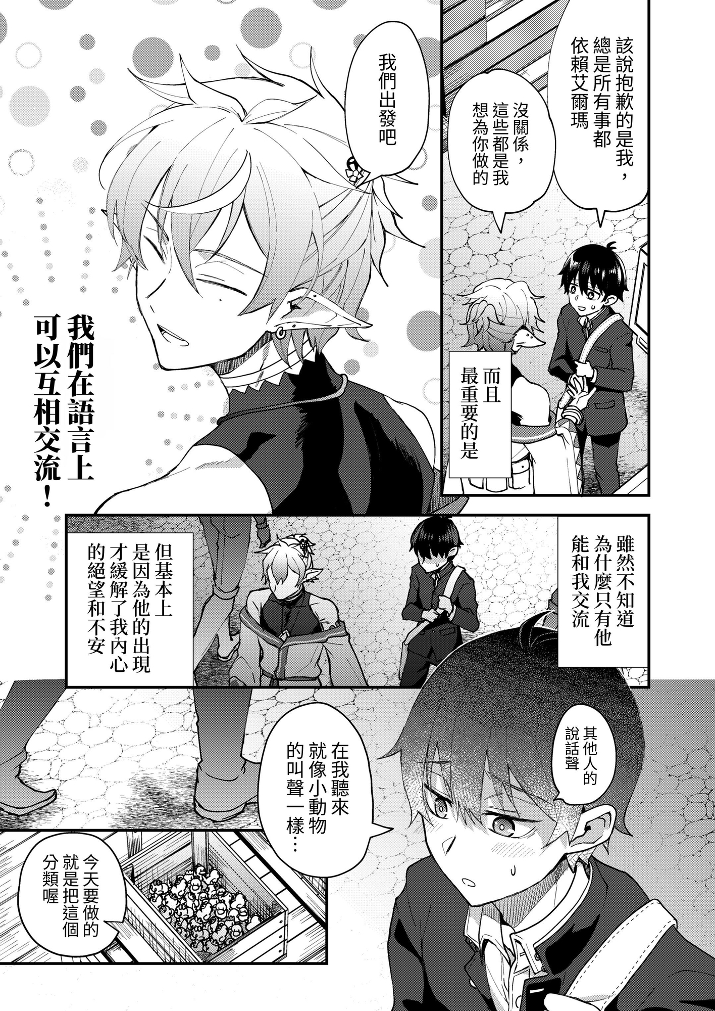 言葉の通じない世界で困惑していたところを♂エルフのエルマに助けられる