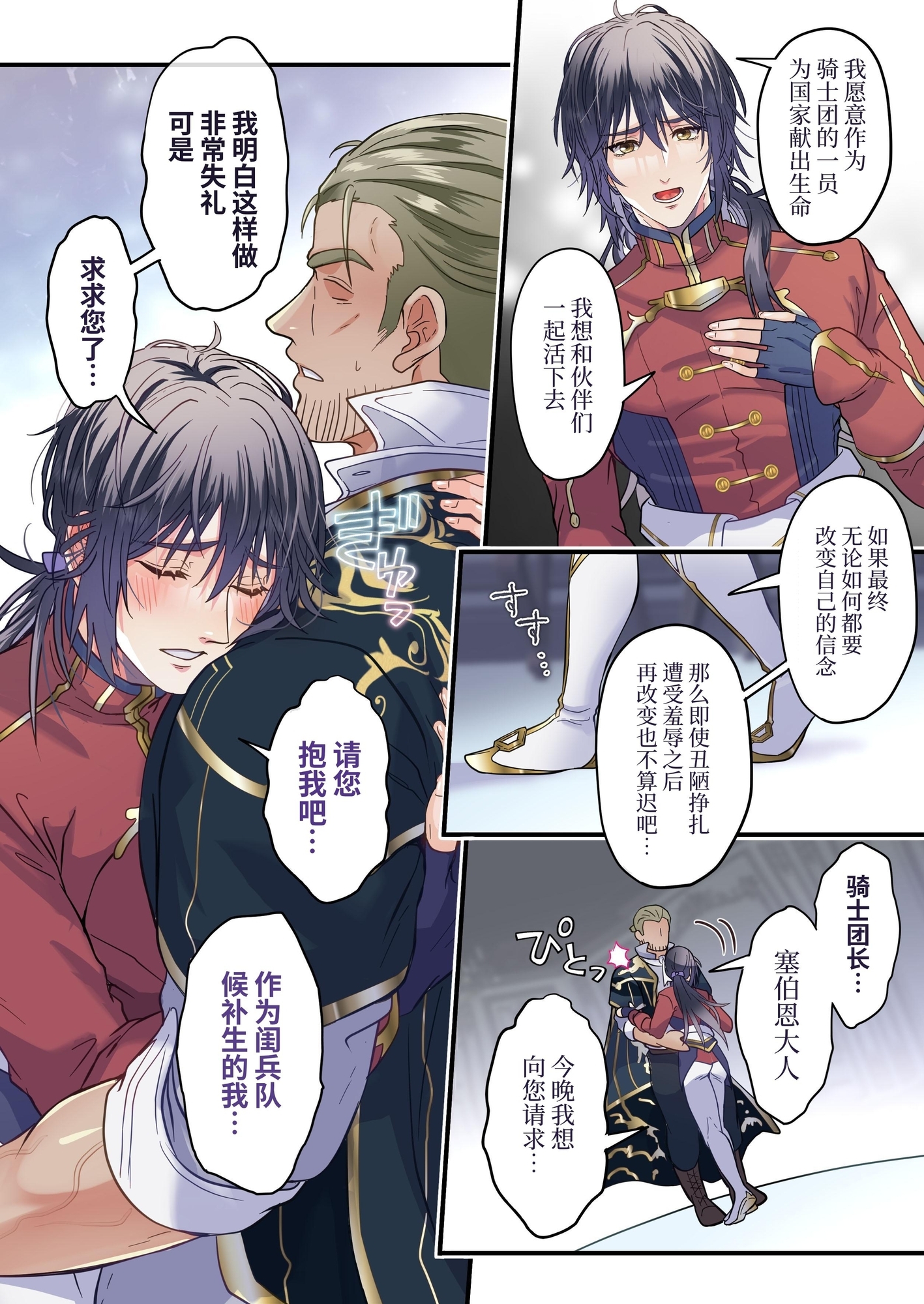 男同士の性交に適応できず正式配属前に悪戦苦闘するユエルは、苦悩の末に最も敬愛する騎士団長へ自らセックス訓練を頼み込む。
