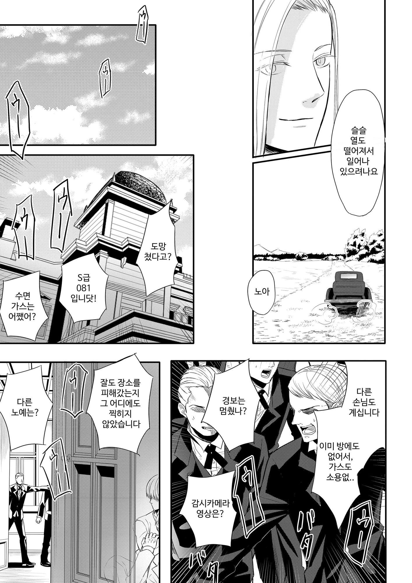 エリアスが不在であると知ったノアは、1人の男を脅し屋敷から脱走を試みる。
