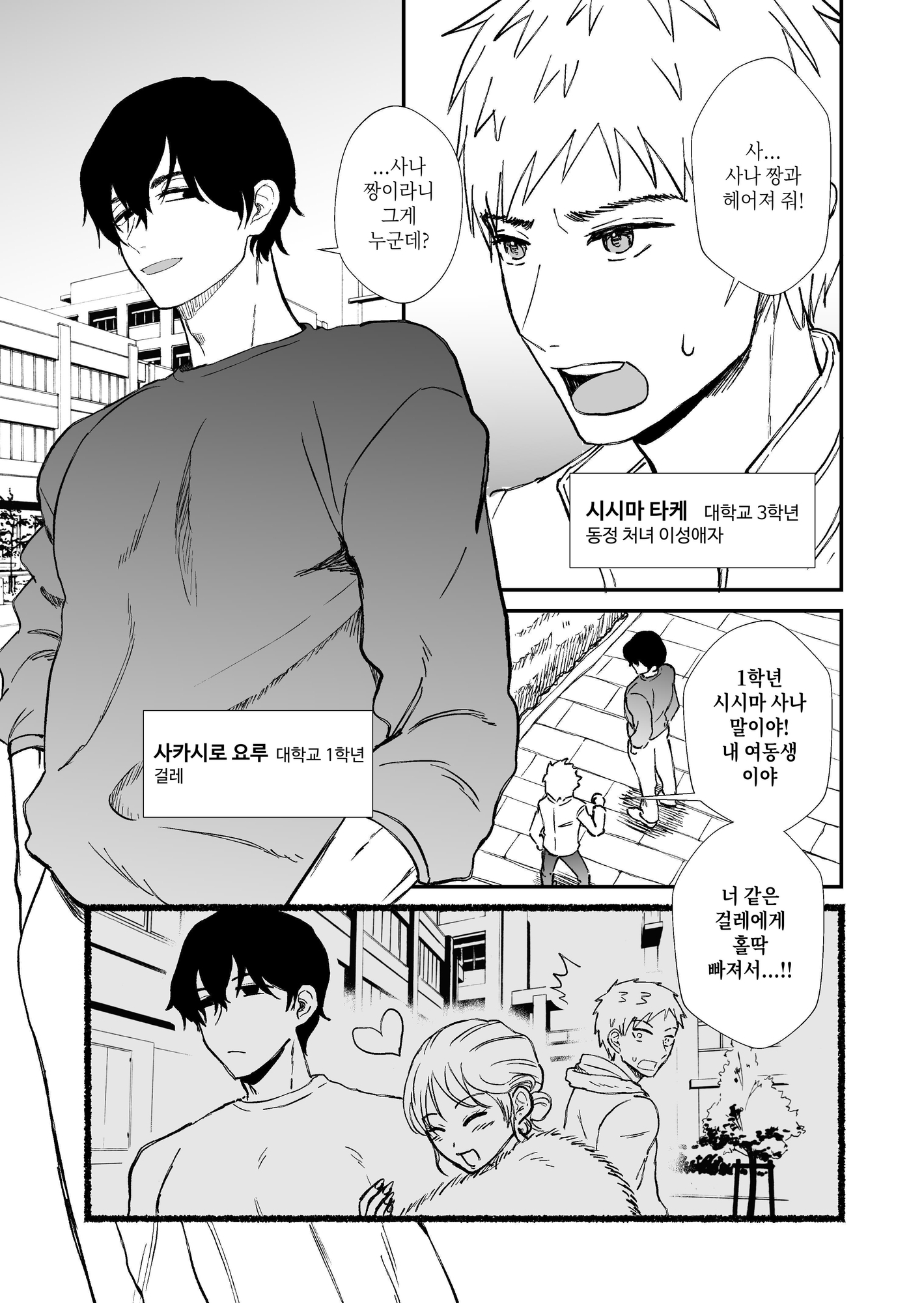 大学生の四島タケは、ヤリチンと噂される男・坂白ヨルが妹と密着して歩いているところを目撃した