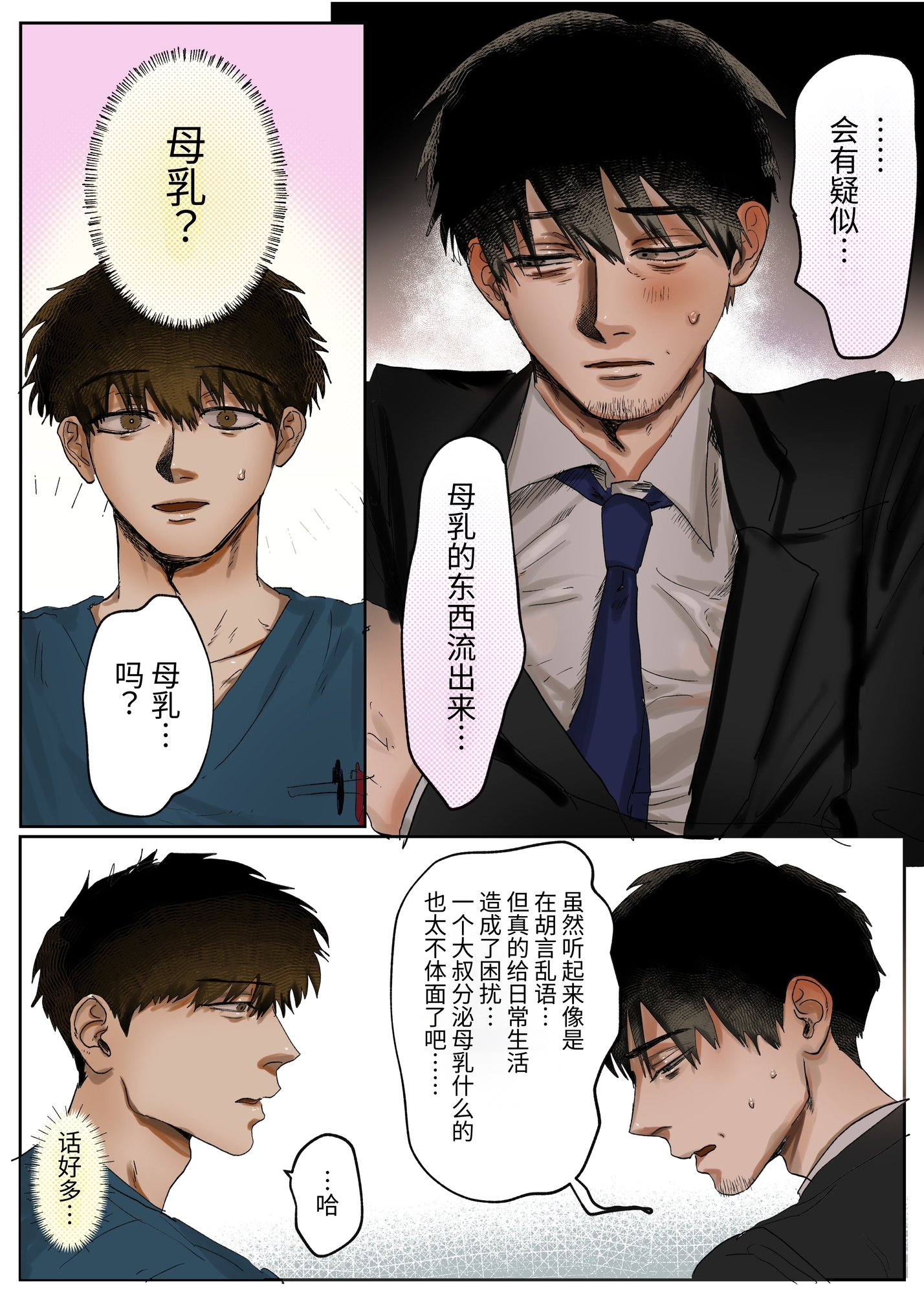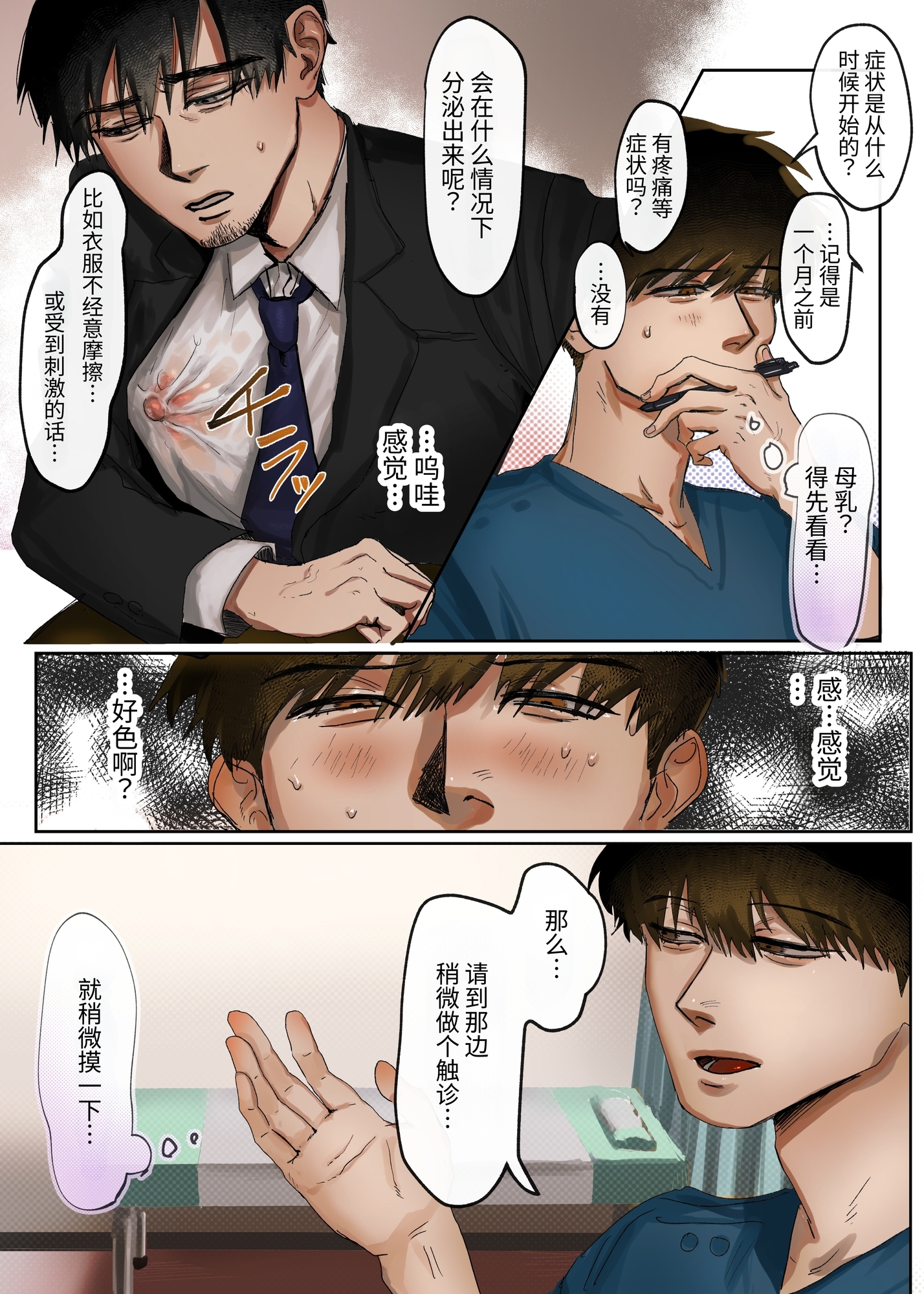 38歳のサラリーマン、吉原が悩みを抱えて訪れたのはイケメン医師・江坂のクリニック。悩みの内容は“謎の母乳”。最初は戸惑う江坂だったが、吉原のシャツ越しに母乳で透けて見える乳首に思わず欲情してしまう。江坂は冷静さを保ちながらも、診察はどんどん欲を孕んだ方向へ……。
