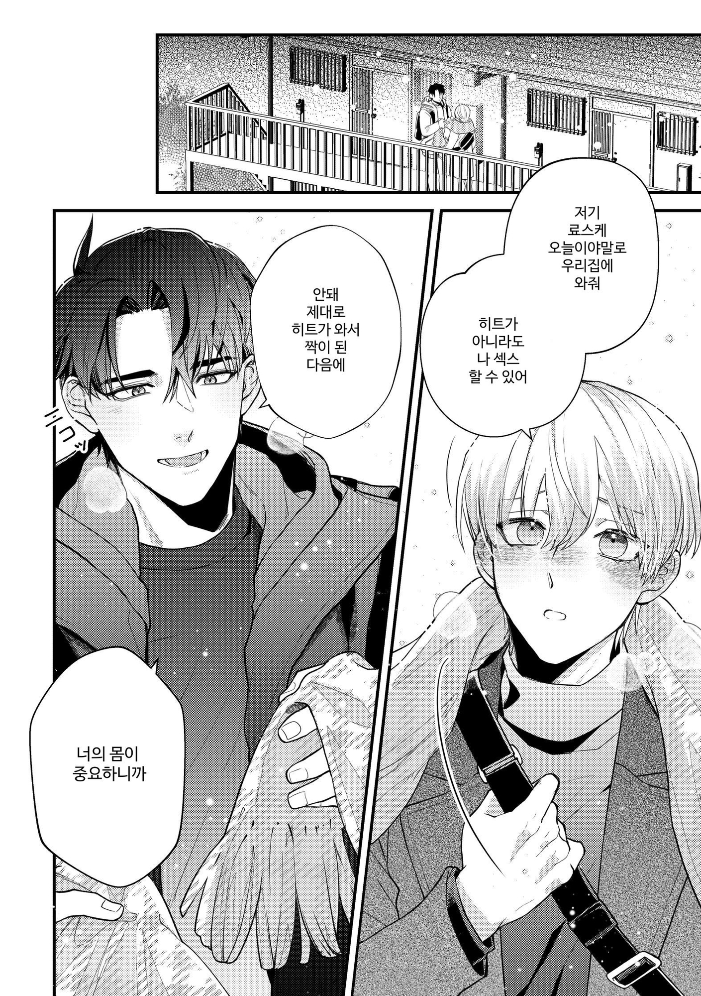 ツバサの身体の負担を心配して発情期が来るまで行為を我慢しようとするリョースケ。