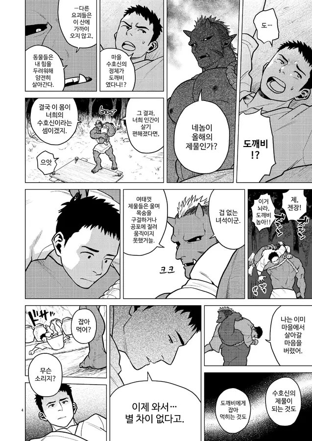 山の神への生贄に捧げられた青年が鬼に孕ませられる話。2024年に体格差アンソロジーへ寄稿した12Pに描き下ろし12Pを加えたものです。