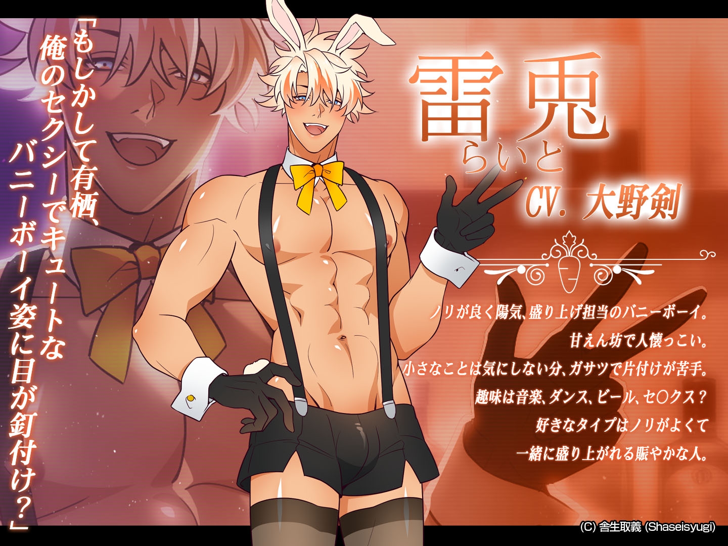 ・アナタが「有栖(男性客・攻)」となって、「バニーボーイ(受)」にウフフな接客を受けるシチュエーション動画。