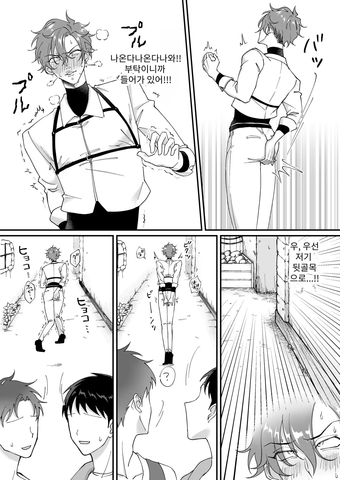 慣れない町に一人で買い物に来た兄だったが、突然便意を催してしまいうんちを我慢しながらトイレを探すことに。我慢の限界を察して内股でヒョコヒョコと市場を抜け、路地裏に逃げ込む兄。漏らすよりはマシだとズボンを下ろそうとするが……。