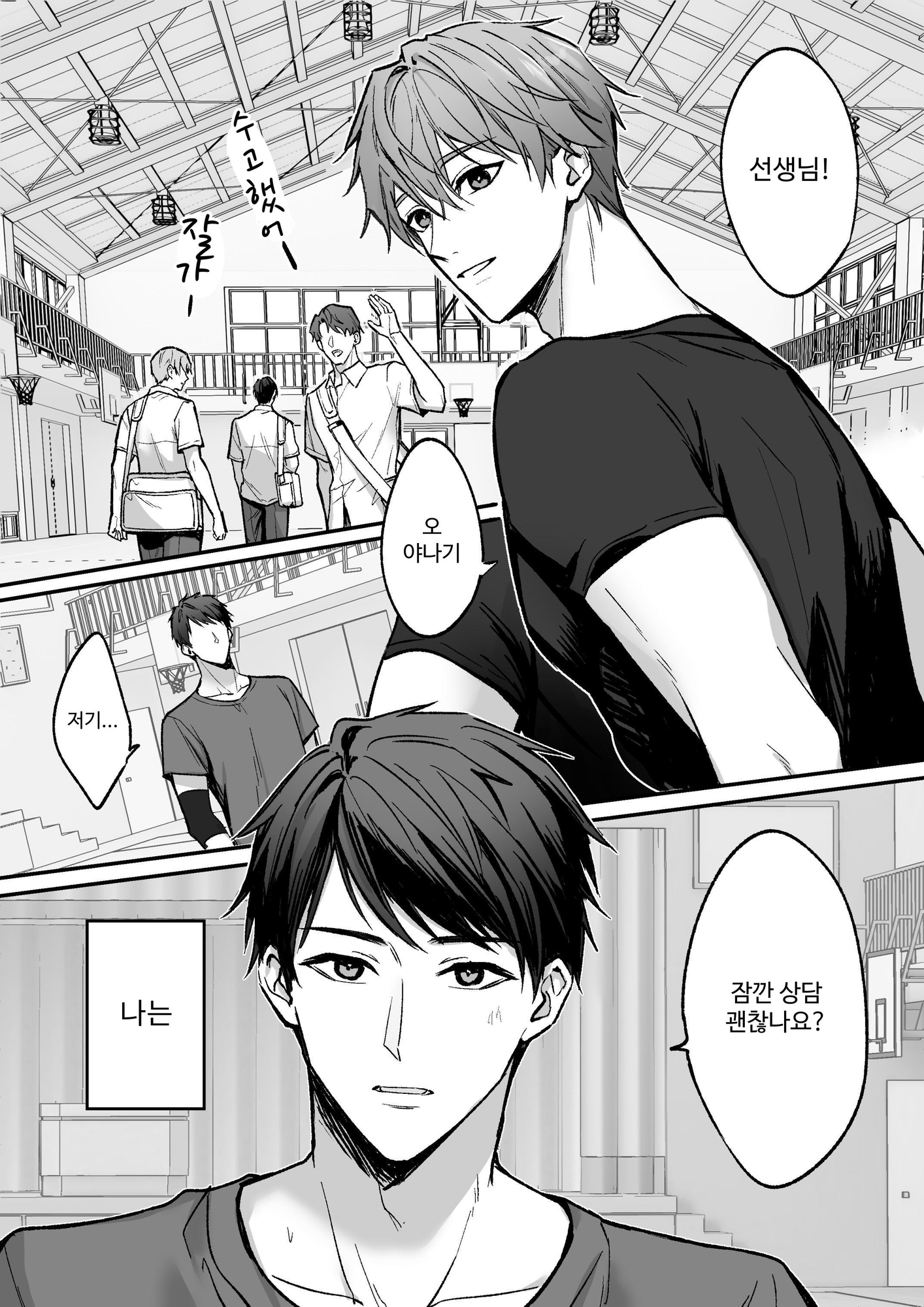 ある日二人で体育館倉庫に積まれたマットを整理中、崩れた重いマットに先生を組敷く形で閉じ込められてしまう。