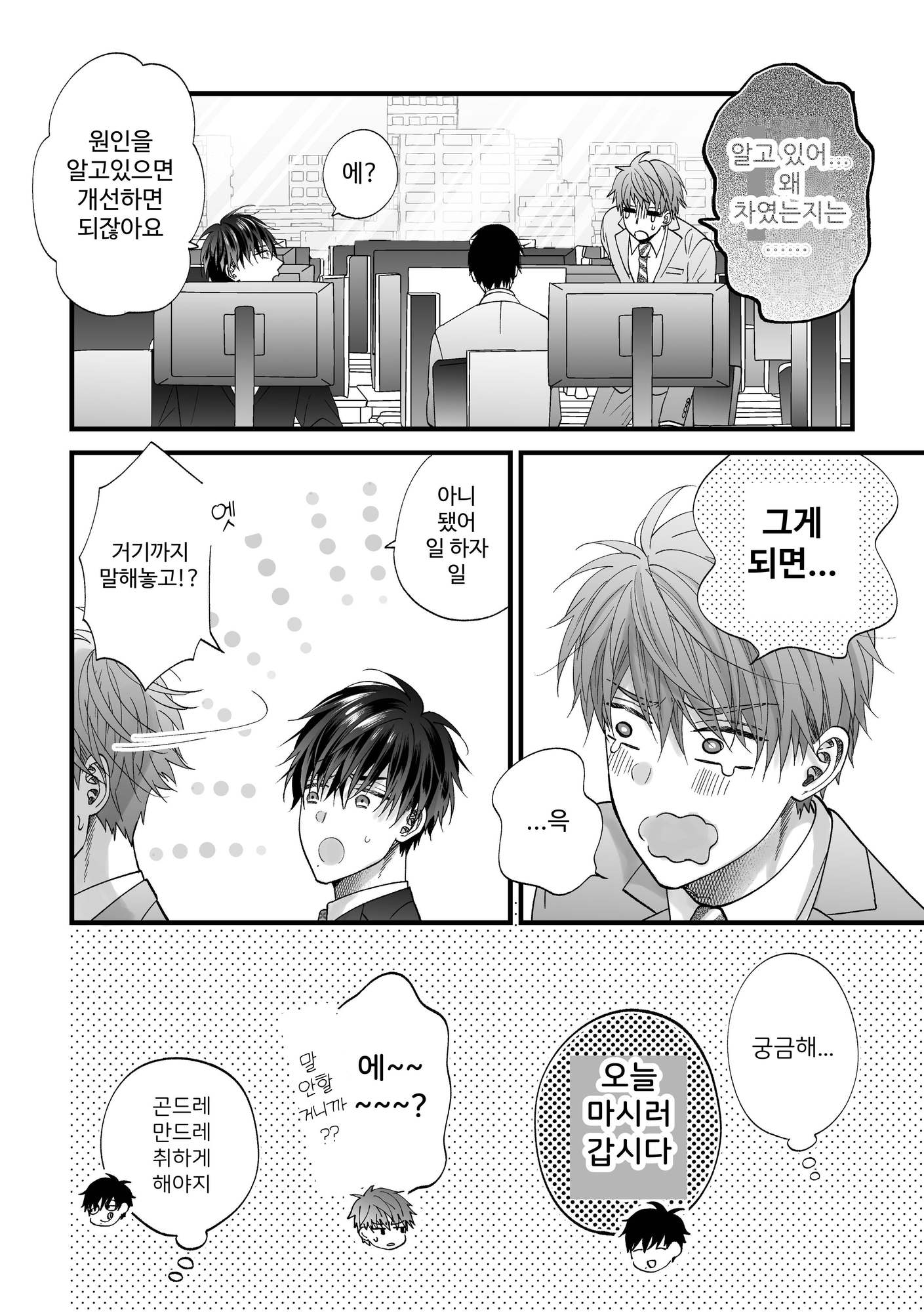 ある日岩崎は、酒の弱い酒井を潰して吐かせようと飲みに誘う。