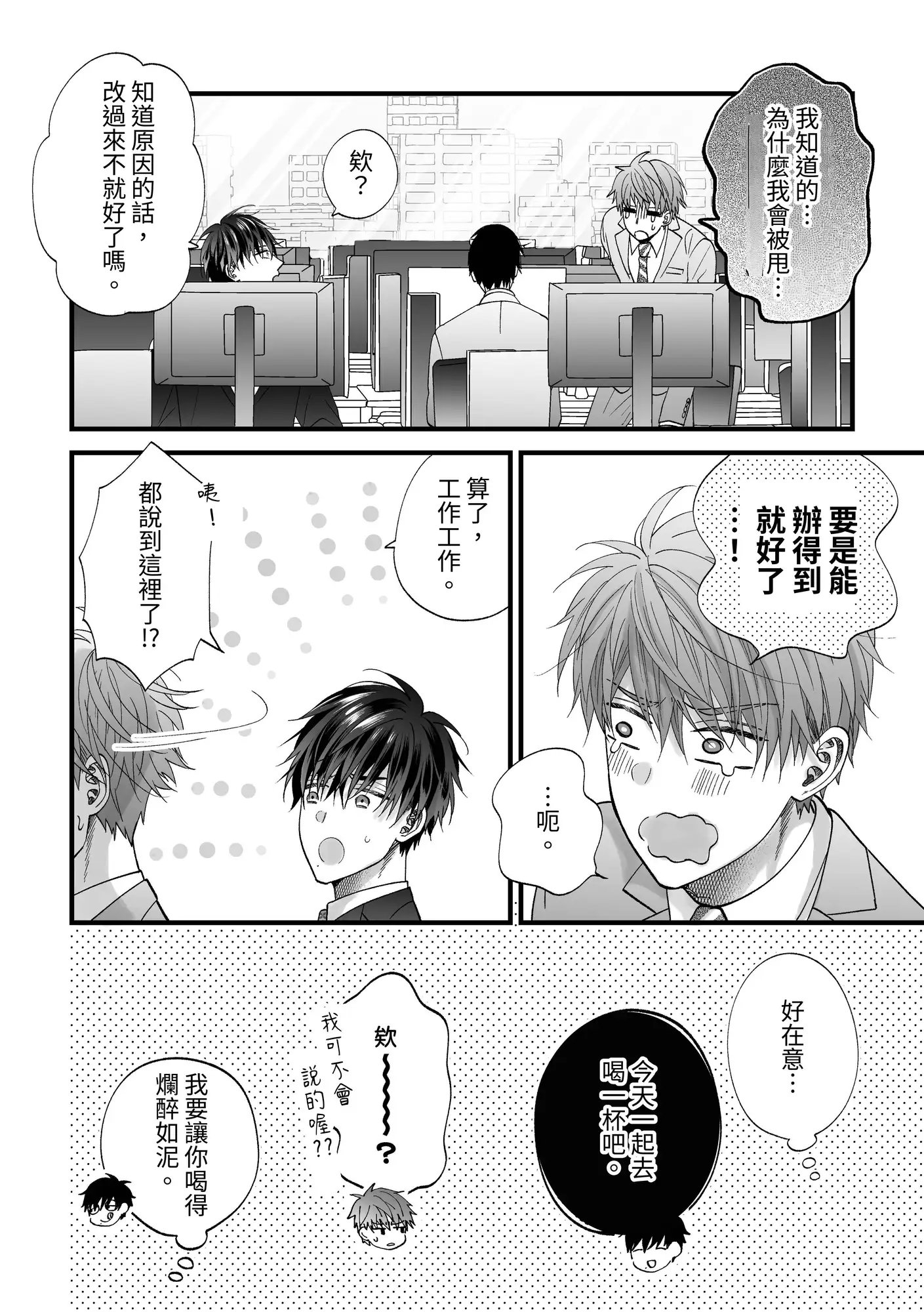 ある日岩崎は、酒の弱い酒井を潰して吐かせようと飲みに誘う。