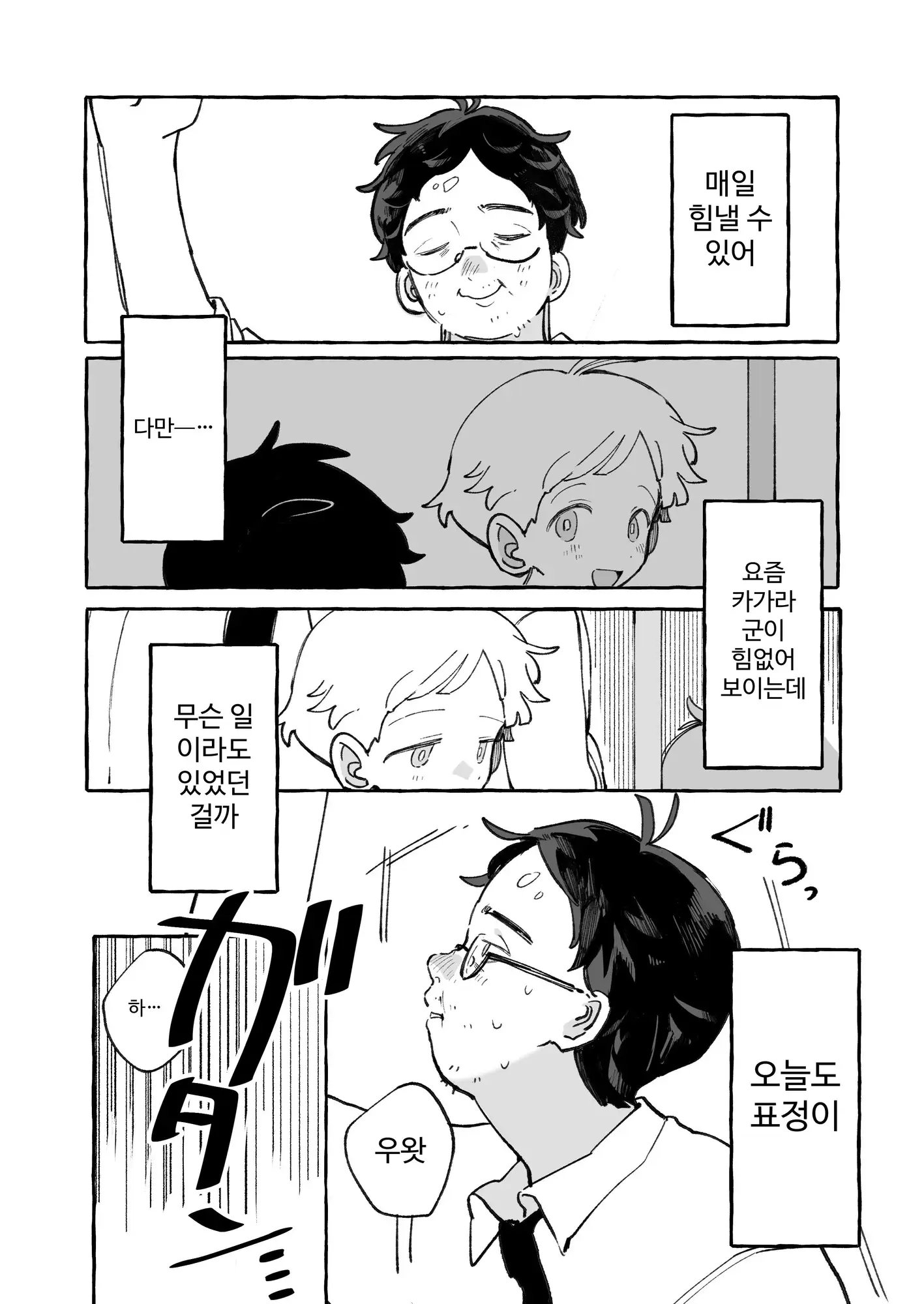 心配になったおじさんはかがらくんをトイレに連れ込むが……。