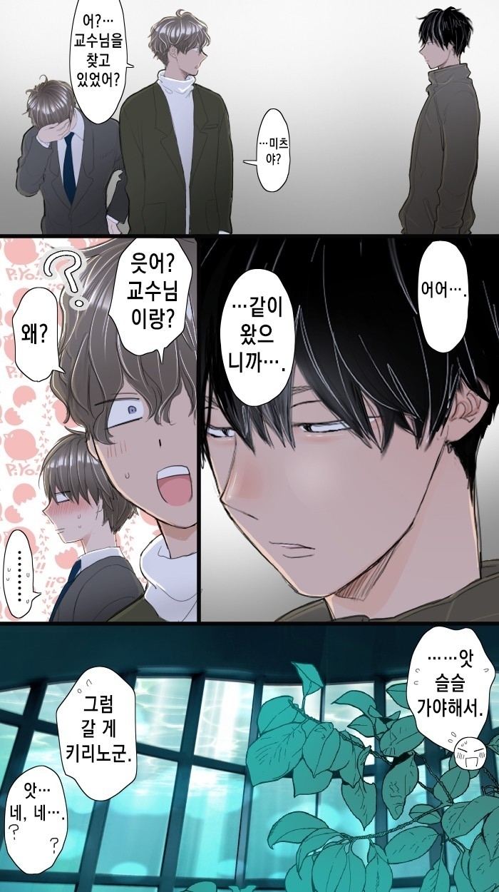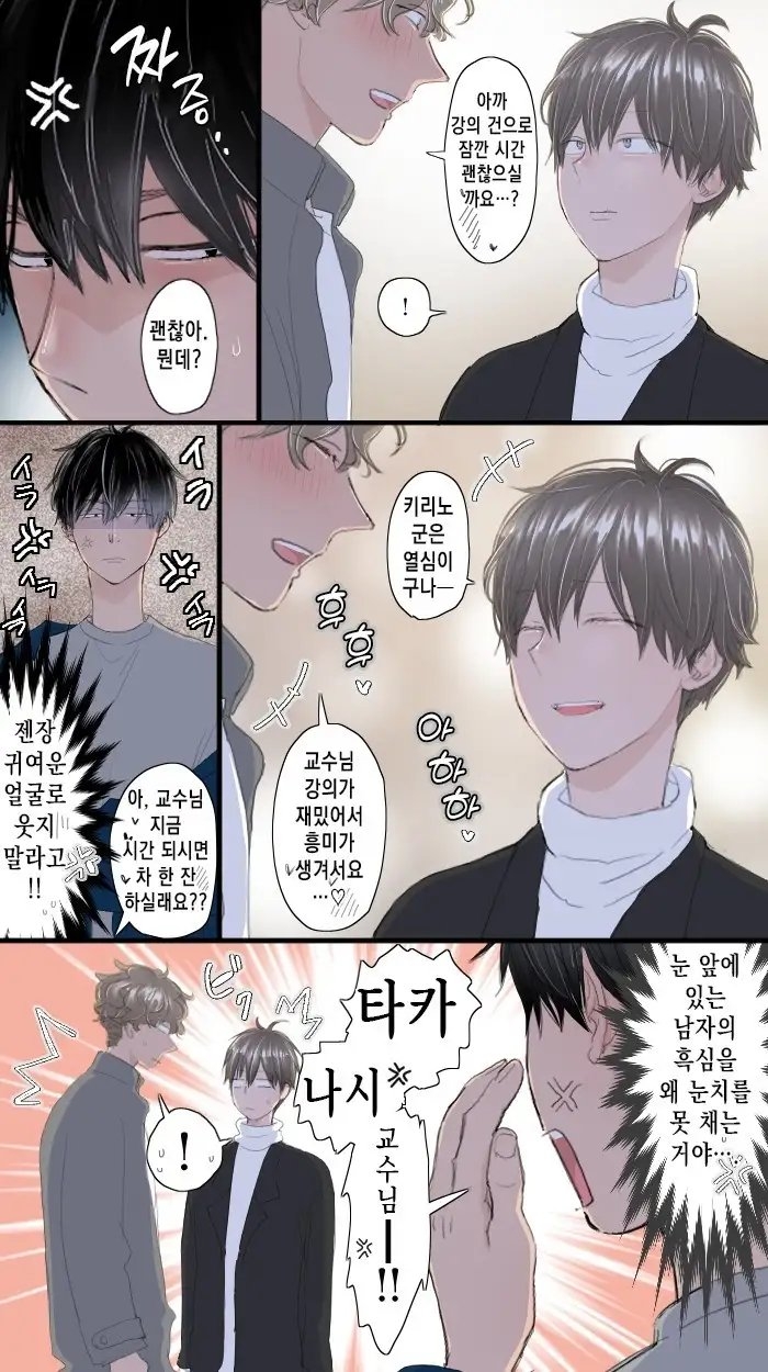 黒髪大学生×清楚系大学教授の創作BLオールフルカラーエロ漫画です。全62ページ。