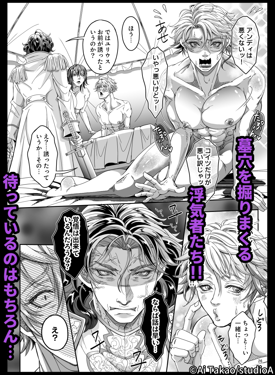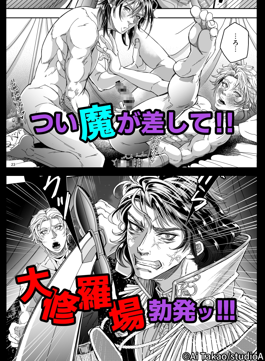 可愛い部下からの誘いを断り切れない優柔不断な隊長ユリウスと、大好きな隊長を前にすっかり雄の本能を取り戻したアンディ。二人でこっそり楽しむつもりがどんどん行為はエスカレートして…。とうとう『挿れたい』と言い出してしまうアンディ!オモチャで散々弄られたユリウスの躰はすっかり蕩けてもう他の男のペニスを拒めない。ユリウスの肛門に押し当てられたアンディの先端がメリッと鈍い音を立てて熱い内部に押し入っていく…