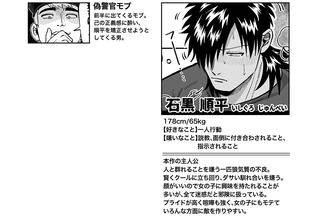 強気で褐色、プライドだけは誰にも負けない不良男。