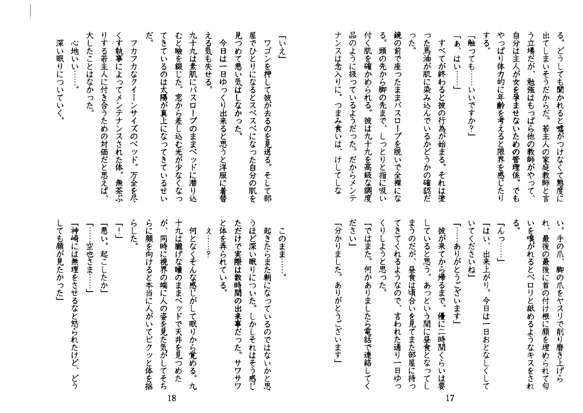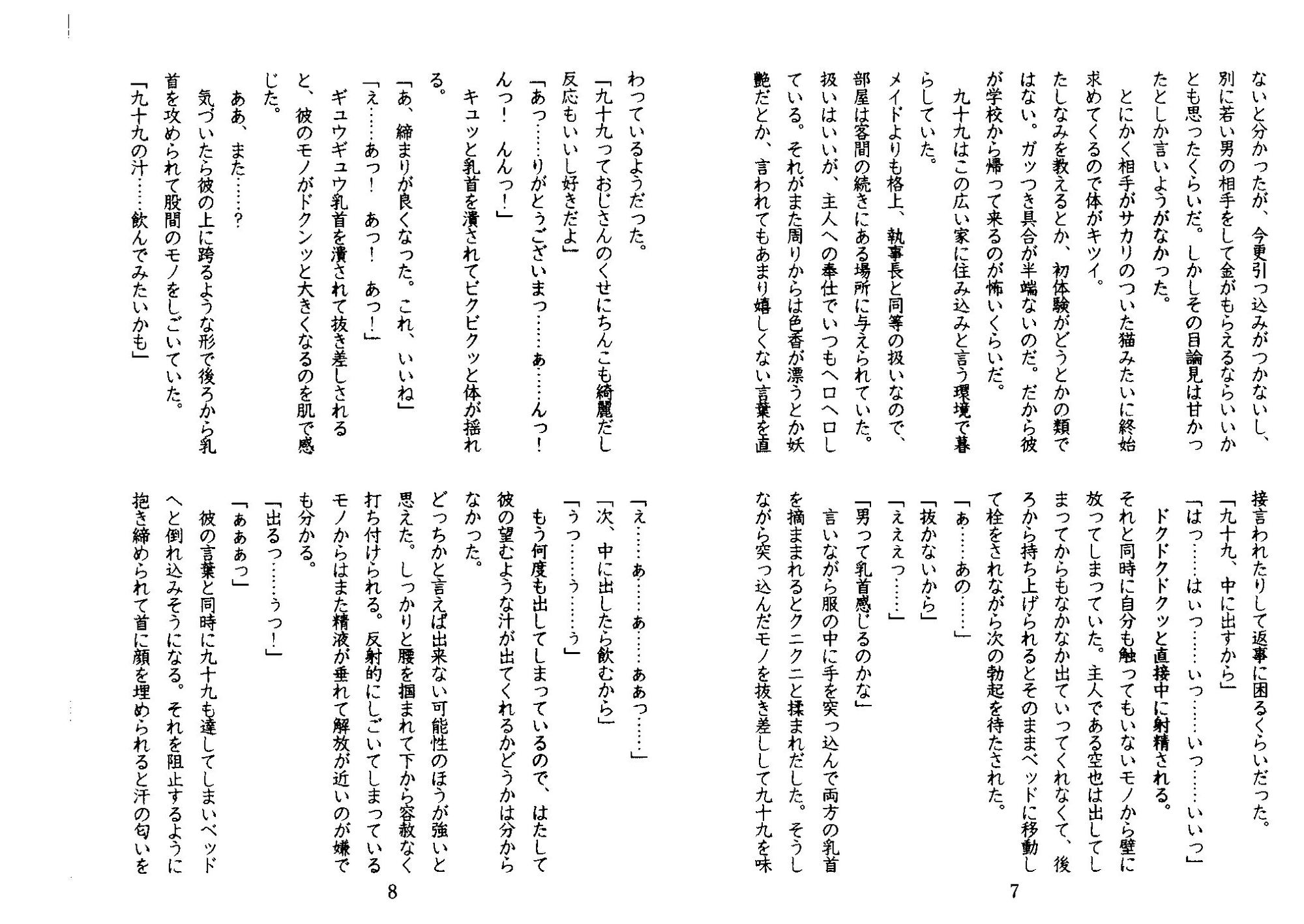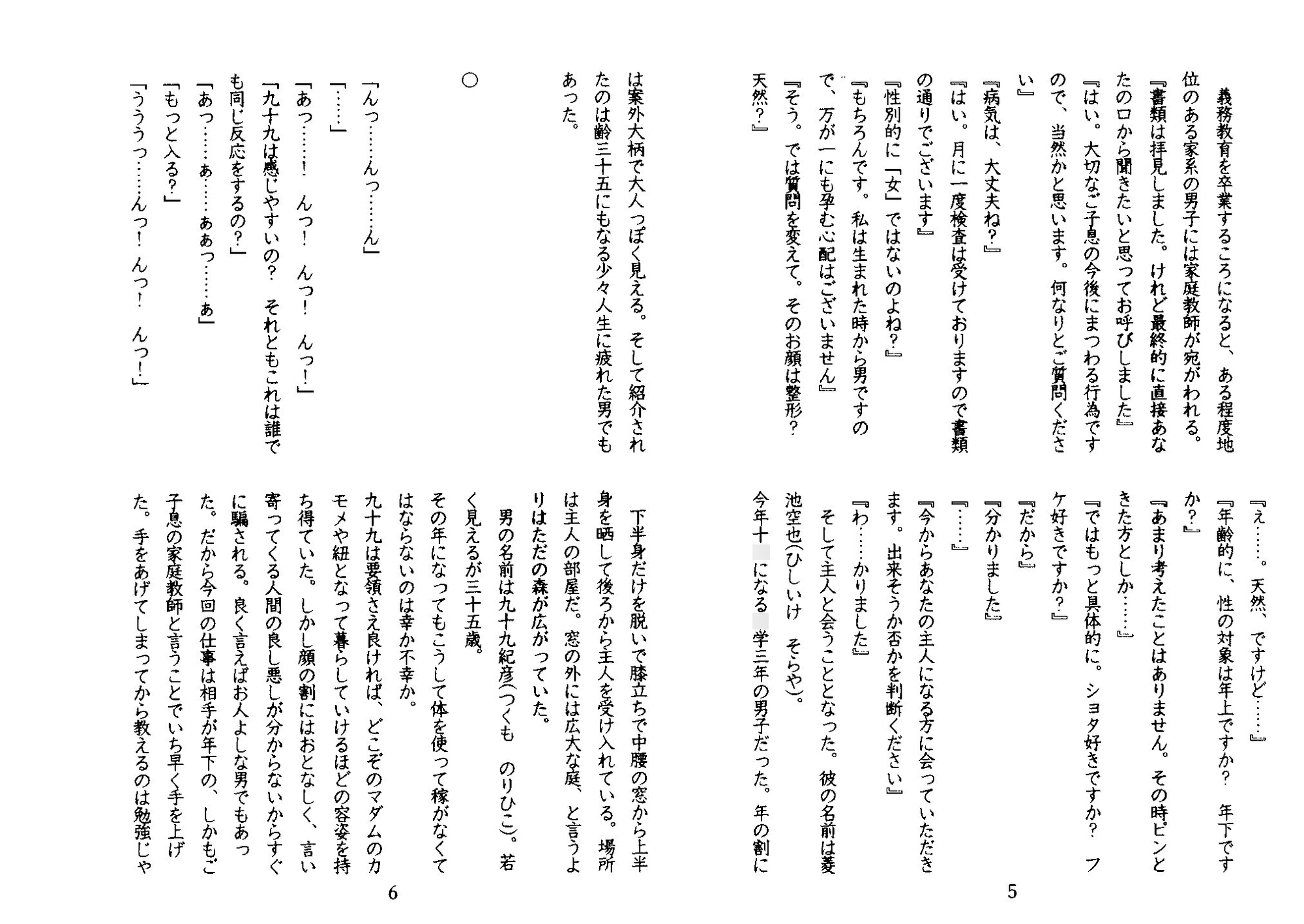 内容 とあるお屋敷で家庭教師として働きだした35歳の美人・九十九。