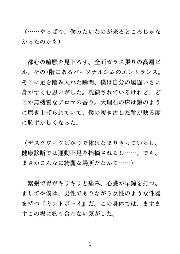 創作BL / カントボーイ / 大学生 / 連続絶頂 / 潮吹き / ♡喘ぎ / 乳首責め / 中出し / クリ責め /パーソナルジム / トレーナー