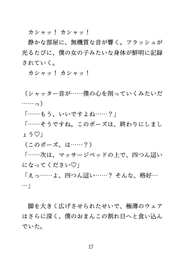 個室へと案内された悠維は、透けそうなほど極薄のウェアに着替えさせられると、確認のための写真を撮られる。