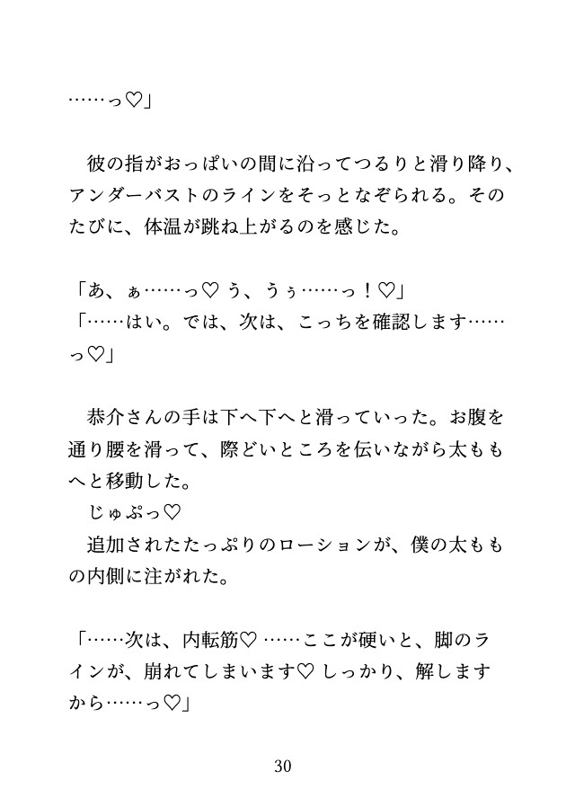 さらには執拗な『触診』が始まり、ローションまみれの指先で全身を隅々まで愛撫されていく。