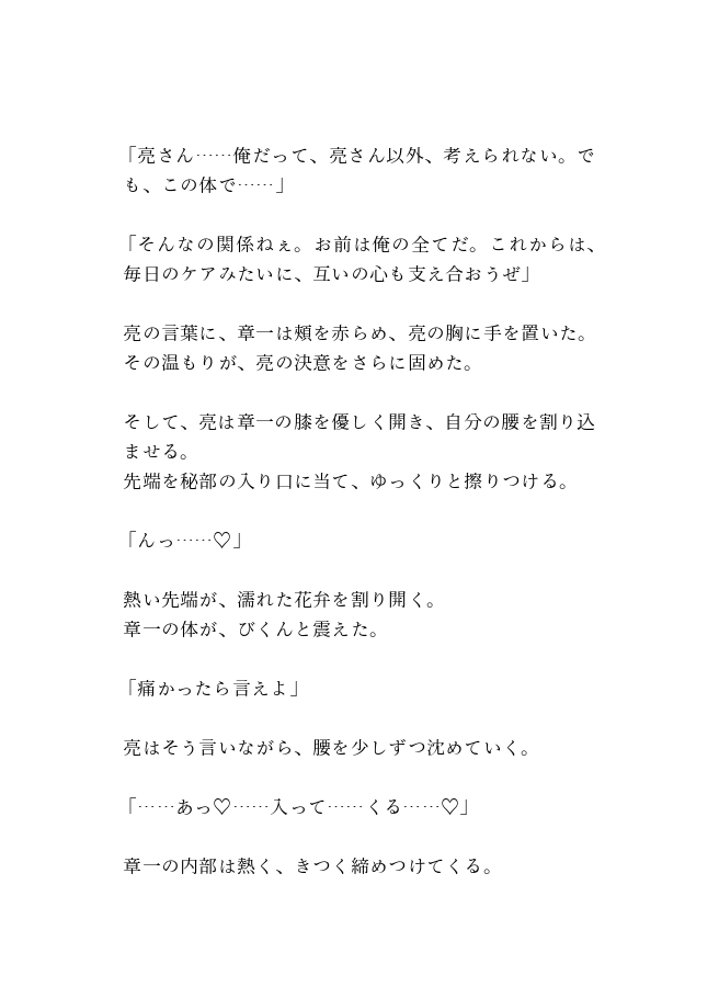 真面目で献身的な章一は、自分の体質(カントボーイ)を3年間隠し続けてきた。