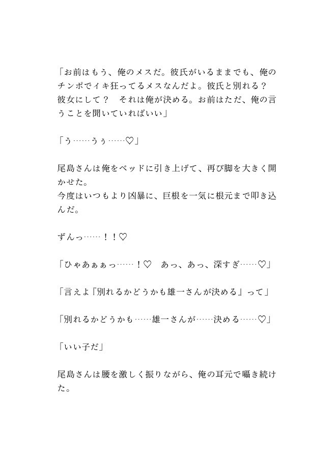 彼氏の優しい中出しを上書きされ、弱いオスの彼女を続けながら強いオスのメスとして支配される背徳の快楽に溺れる……。