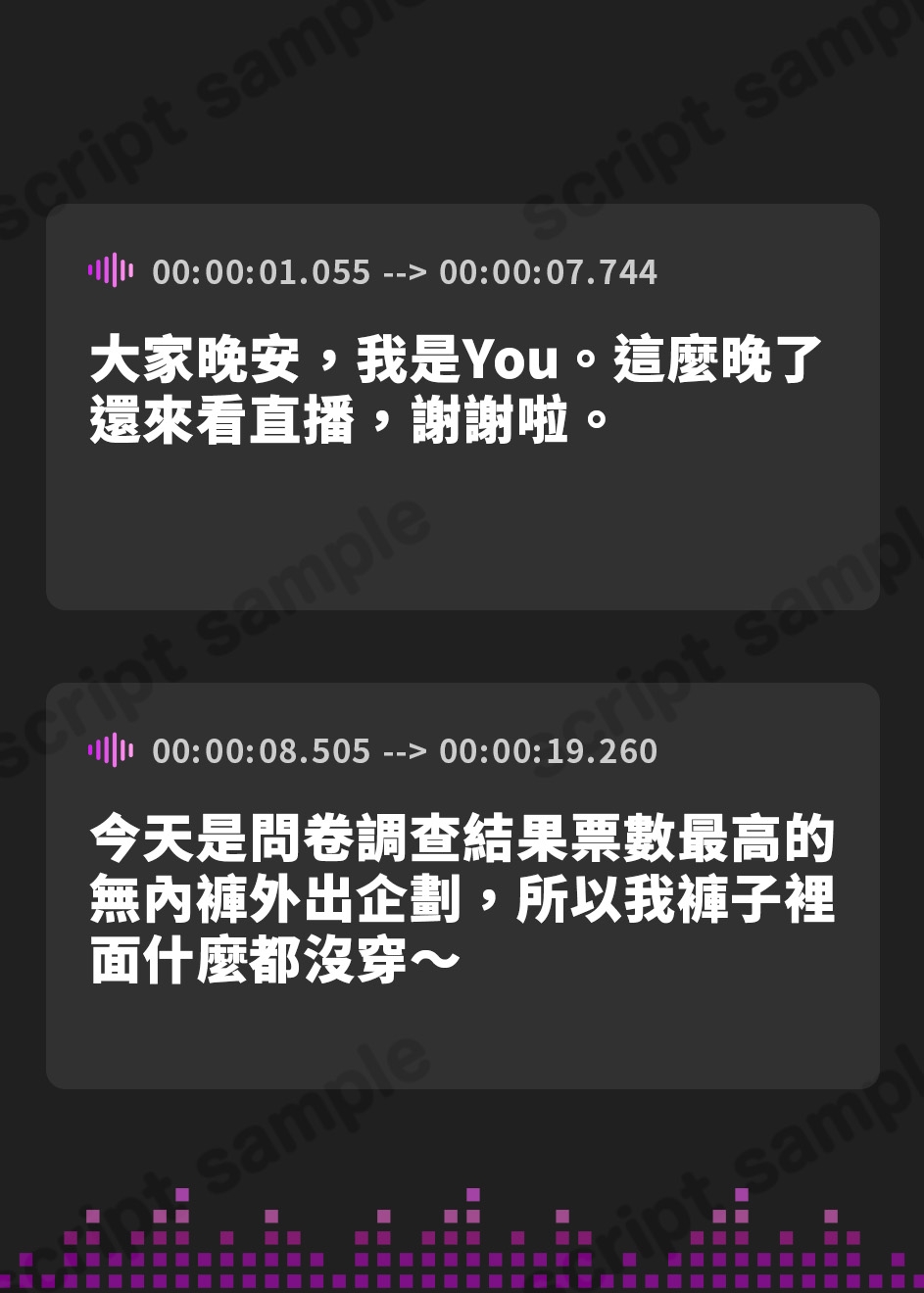 人気配信者のyouは、視聴者アンケートで決まった「ノーパン外出企画」を実行するため、夜の街をスマホで生配信しながら歩いていた。