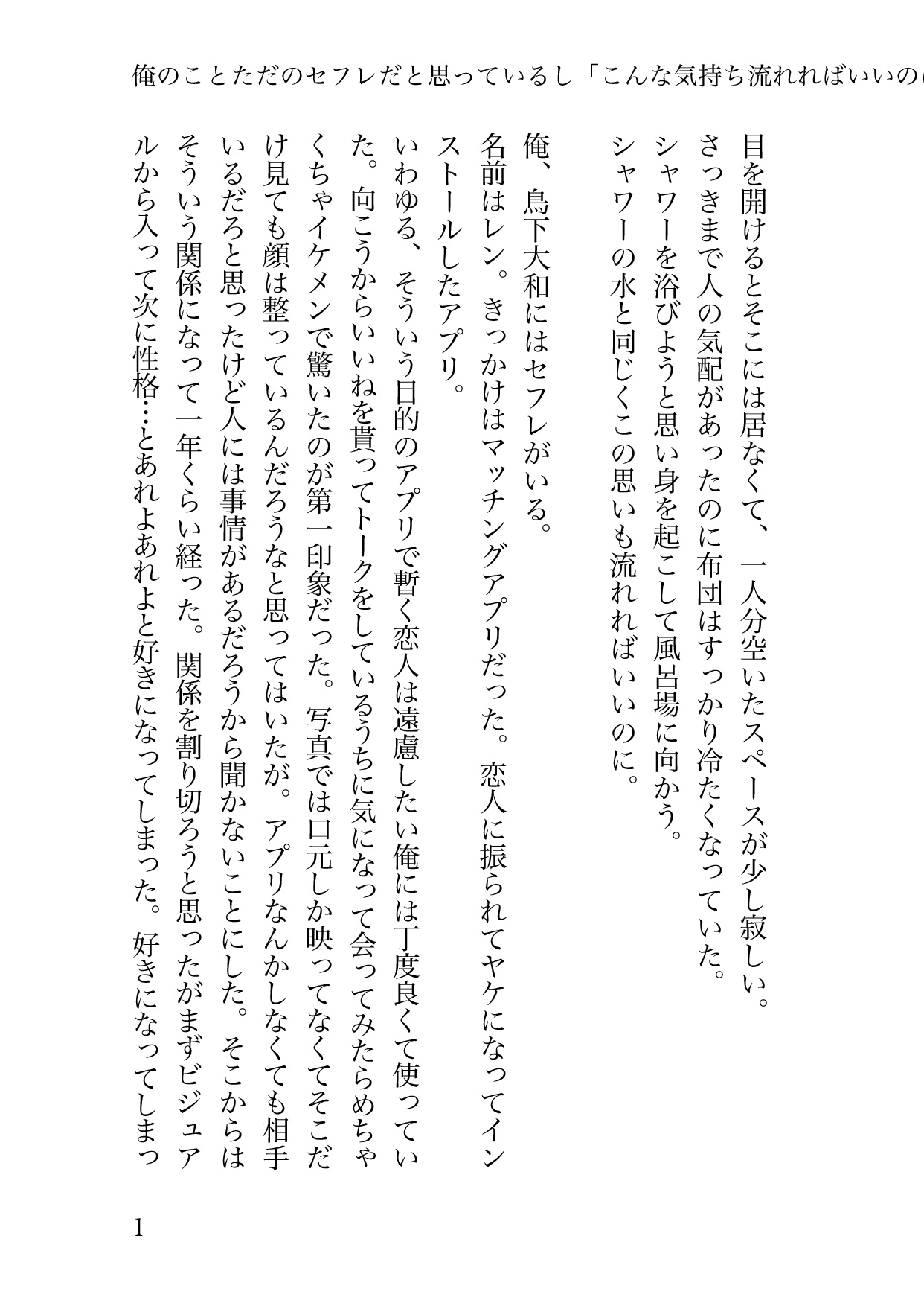 名前はレン。きっかけはマッチングアプリだった。恋人に振られてヤケになってインストールしたアプリ。