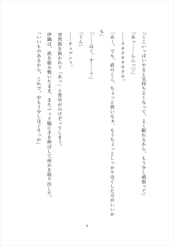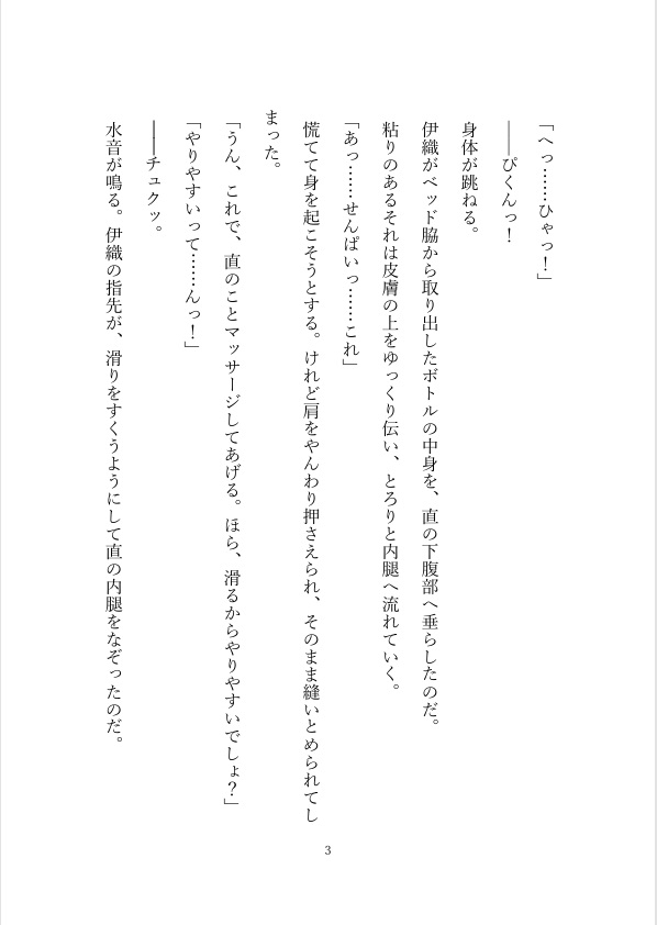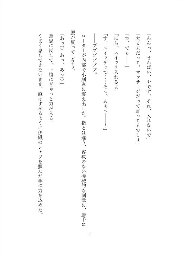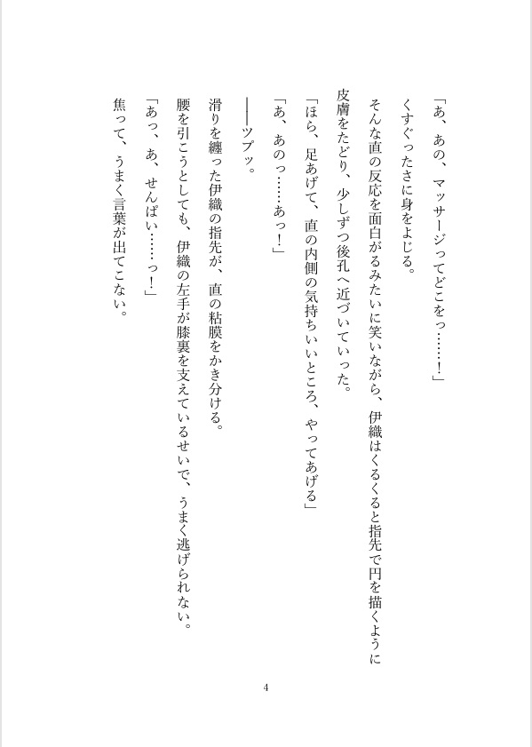 最初は手や肩、脚をほぐしていただけのはずが、伊織の手つきは少しずつ際どくなっていき――。