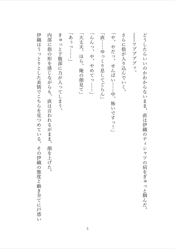 優しい顔のまま距離を詰めてくる先輩に、直は戸惑いながらも押し切られてしまう。