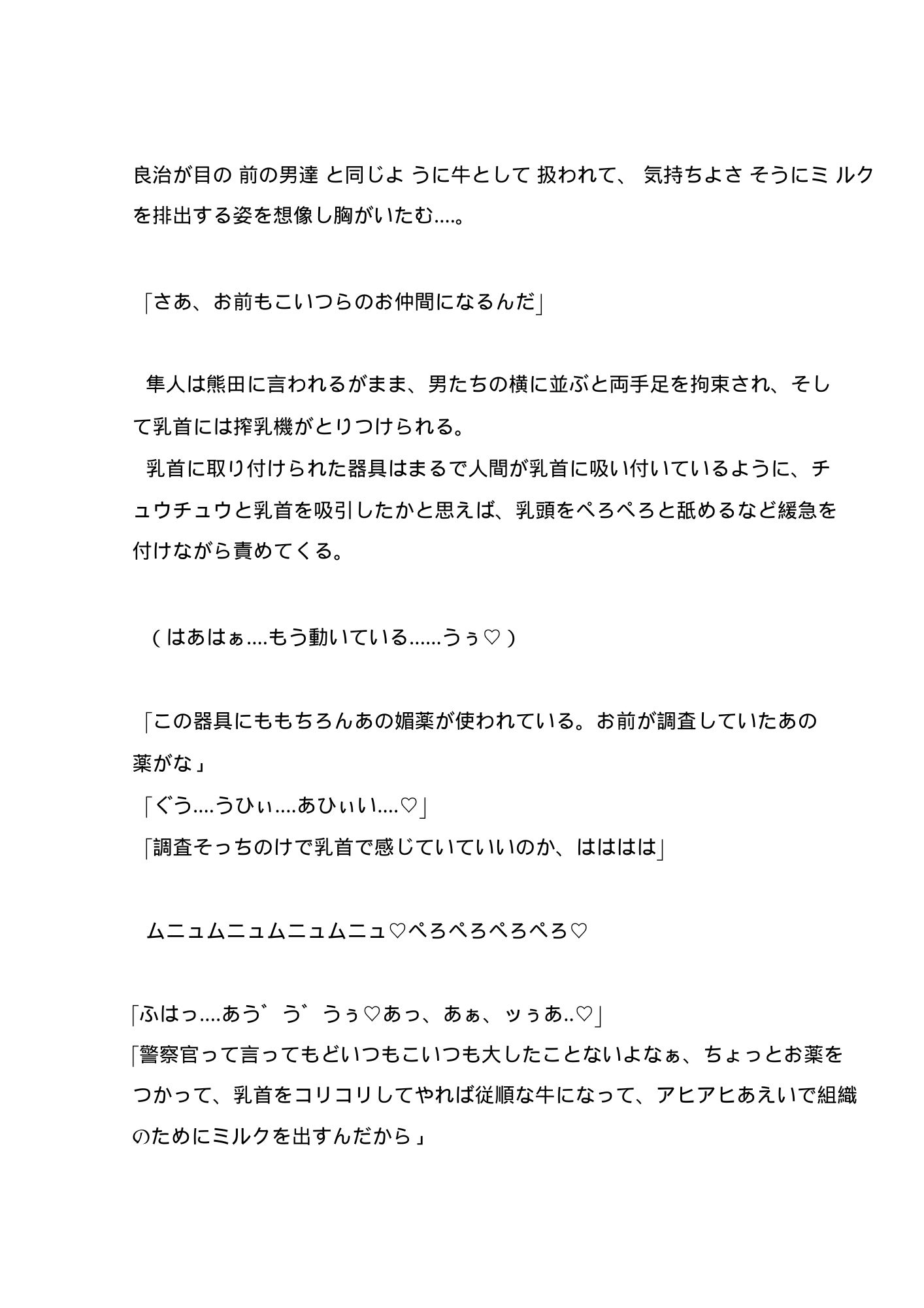 潜入捜査官が組織に捕まって、乳ミルク製造するメス牛にさせられる話2について