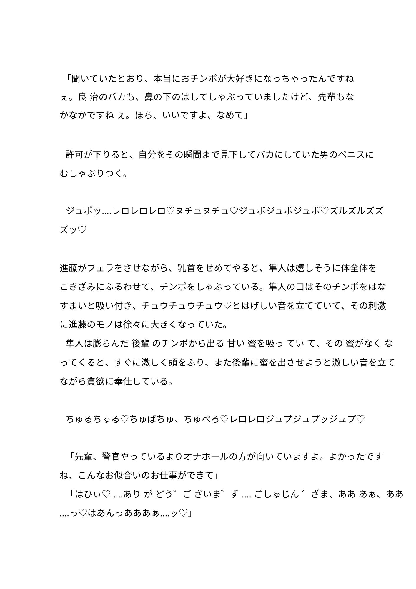 違法な薬を取引する会社に潜入した警察官が、正体がばれ組織に捕まって調教されていくお話です。