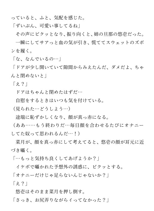 しかし、姉の旦那に自慰行為を見られてから一変する。