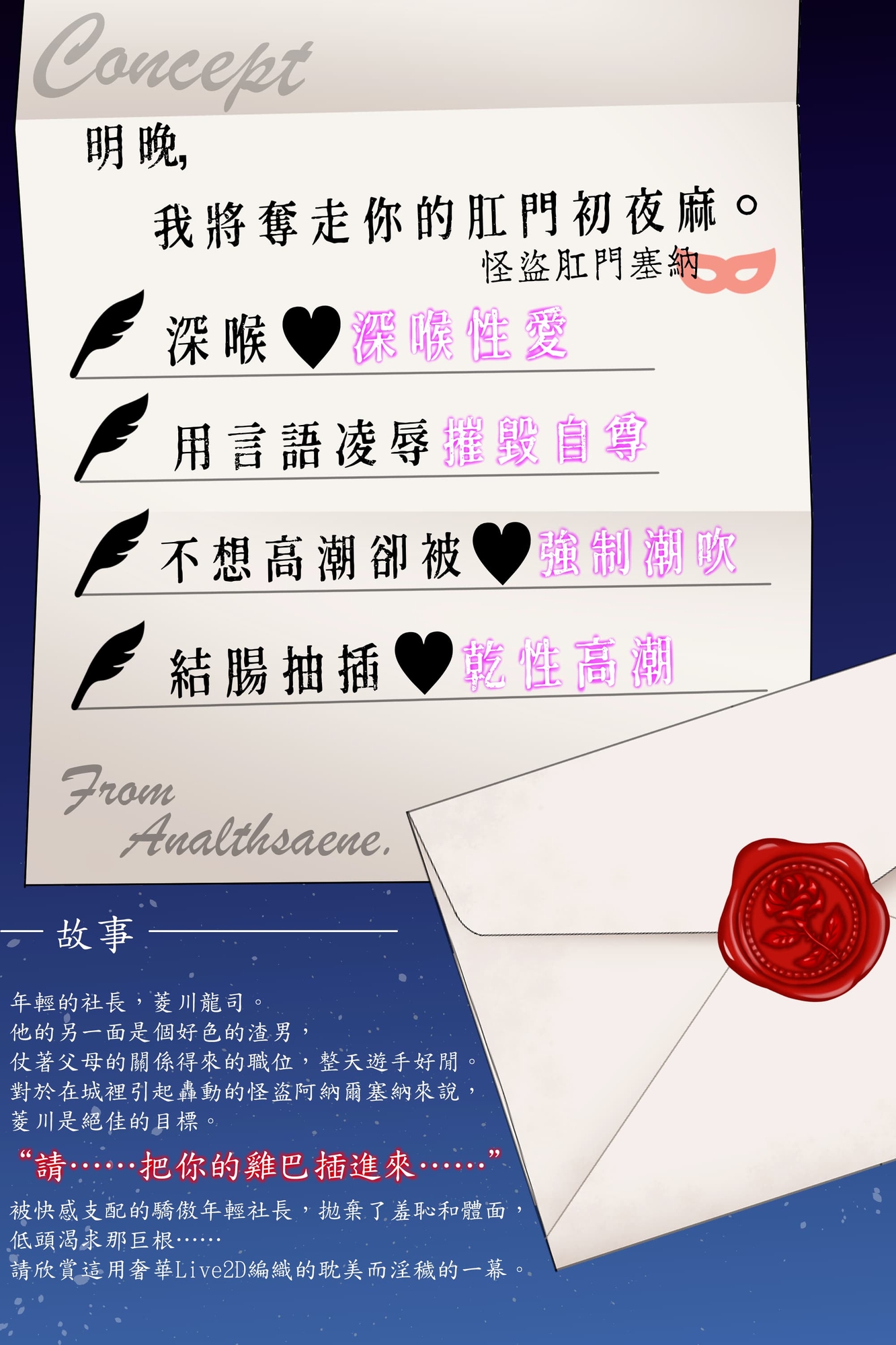 高傲的總裁屈服於肛門塞納的技巧,被快感支配。阿納爾塞恩徹底調教他,奪走了他的肛門處女……