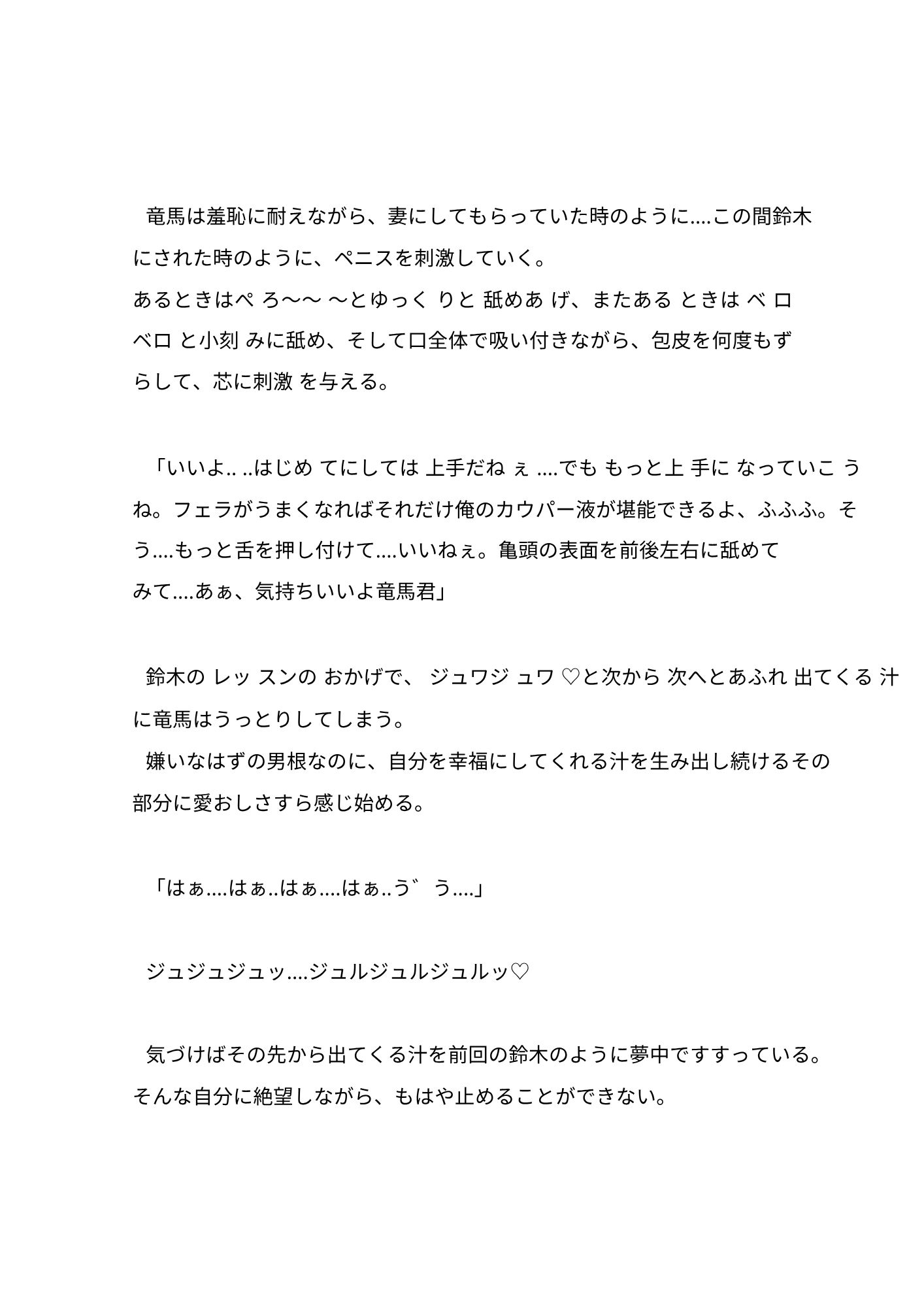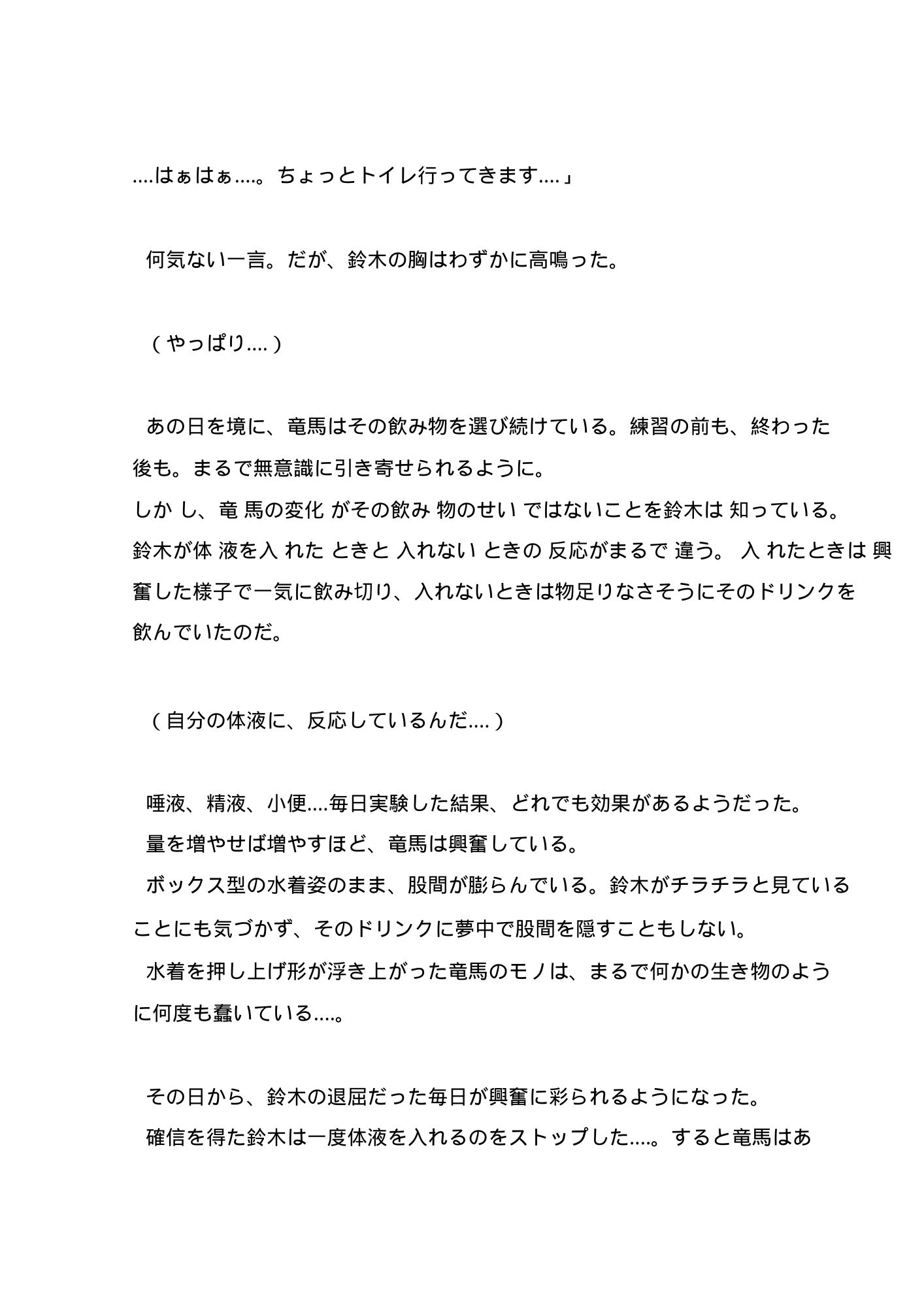 唾液、精液、我慢汁、小便‥‥体から出るすべての体液に快楽を与える効果と依存性がある男が、気になる既婚のイケメン水泳インストラクターを体液漬けにして、自分のモノにしてしまうお話です。