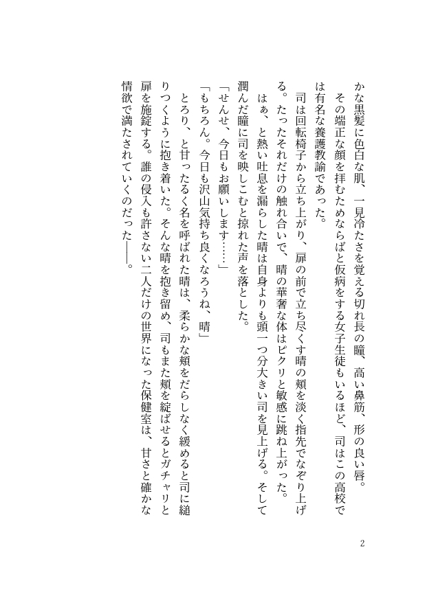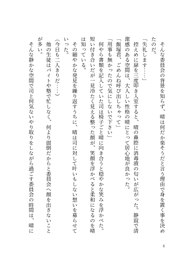 晴と司の初めてのセックス→その後の二人の二部編成です。