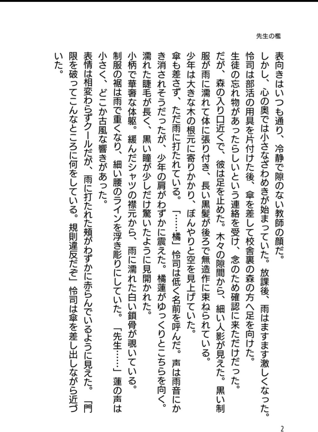無自覚に色気を振りまく「カントボーイ」の蓮に、怜司は一瞬で心を奪われた。「補習」という名目で始まった二人きりの時間。